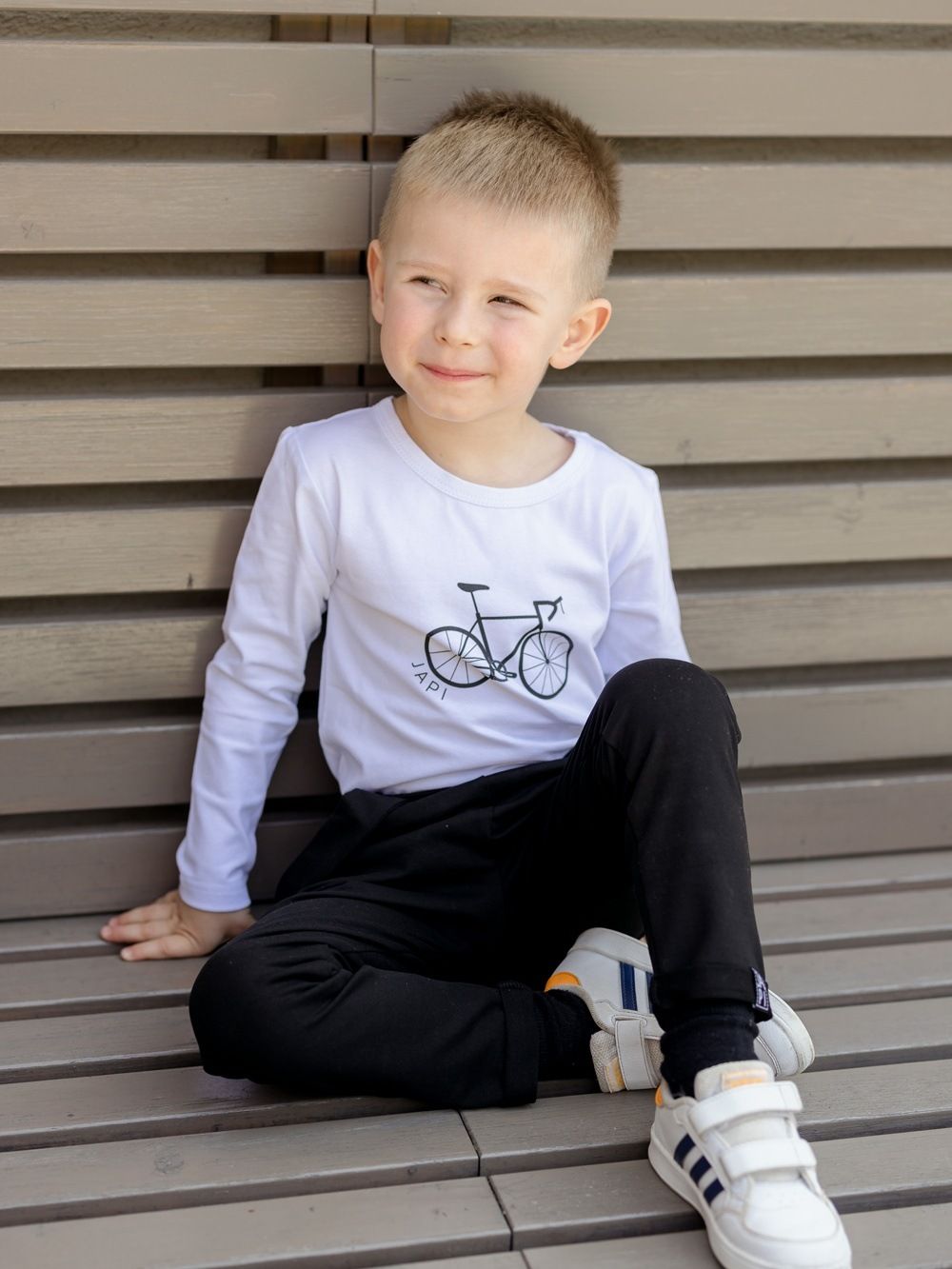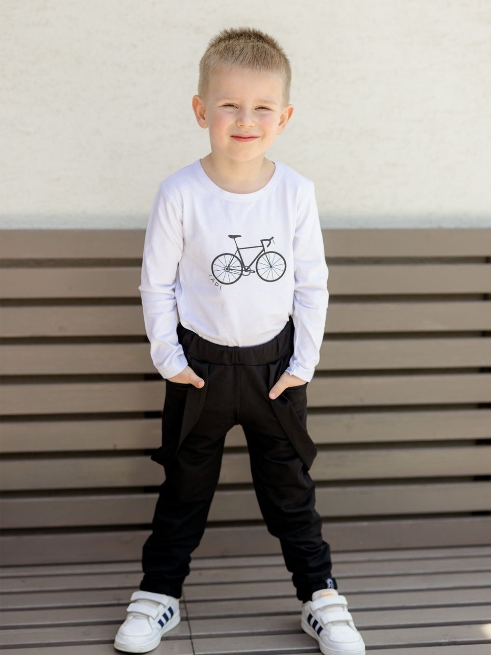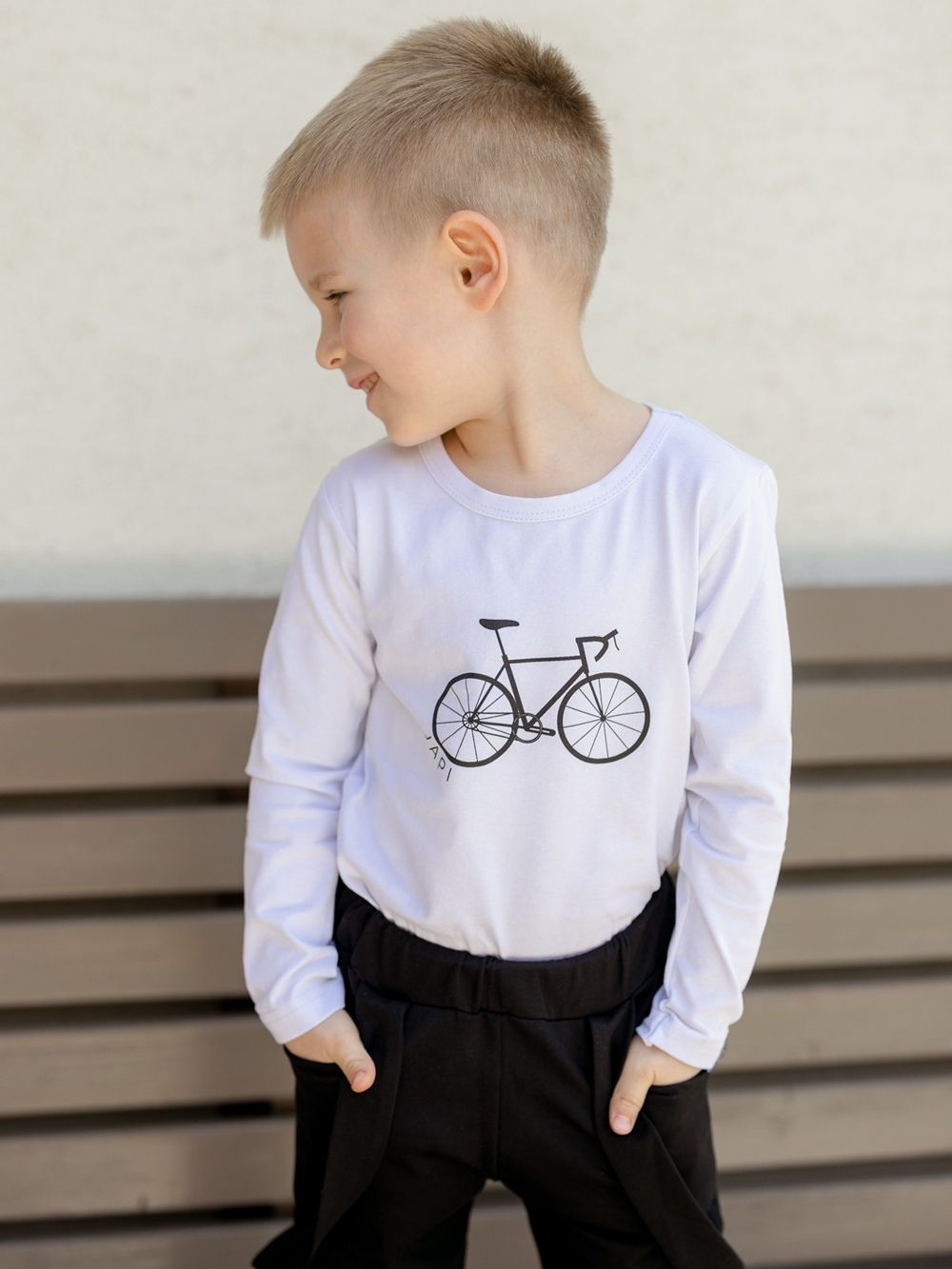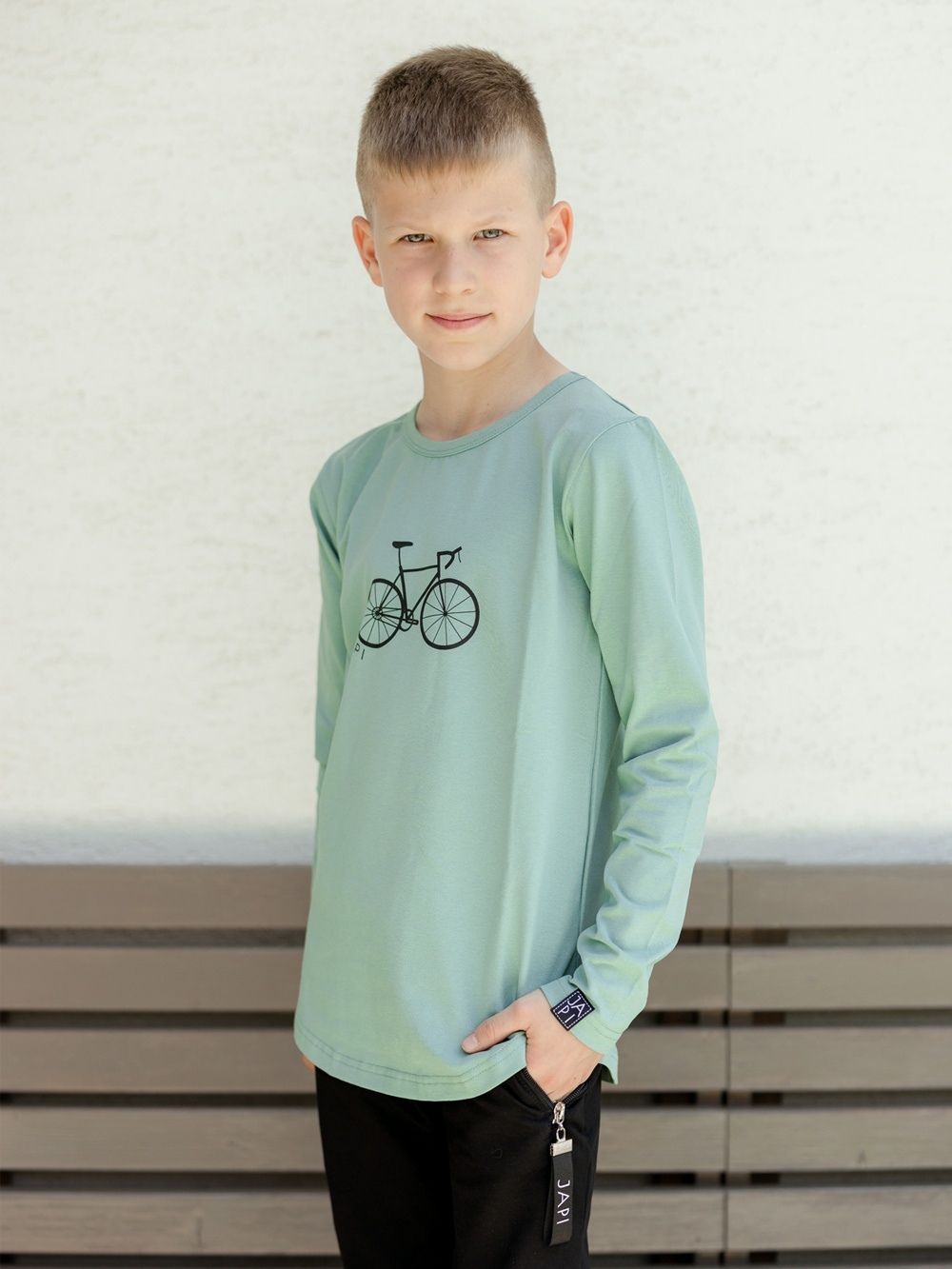 Udobna i praktična majica za školu ili vrtić. U zelenoj ili bijeloj boji s crnim printom bicikla. Dječacima će se svidjeti ugodan kroj. Majicu možete kombinirati sa trenirkom i duksom iz naše ponude i stvoriti usklađen komplet.