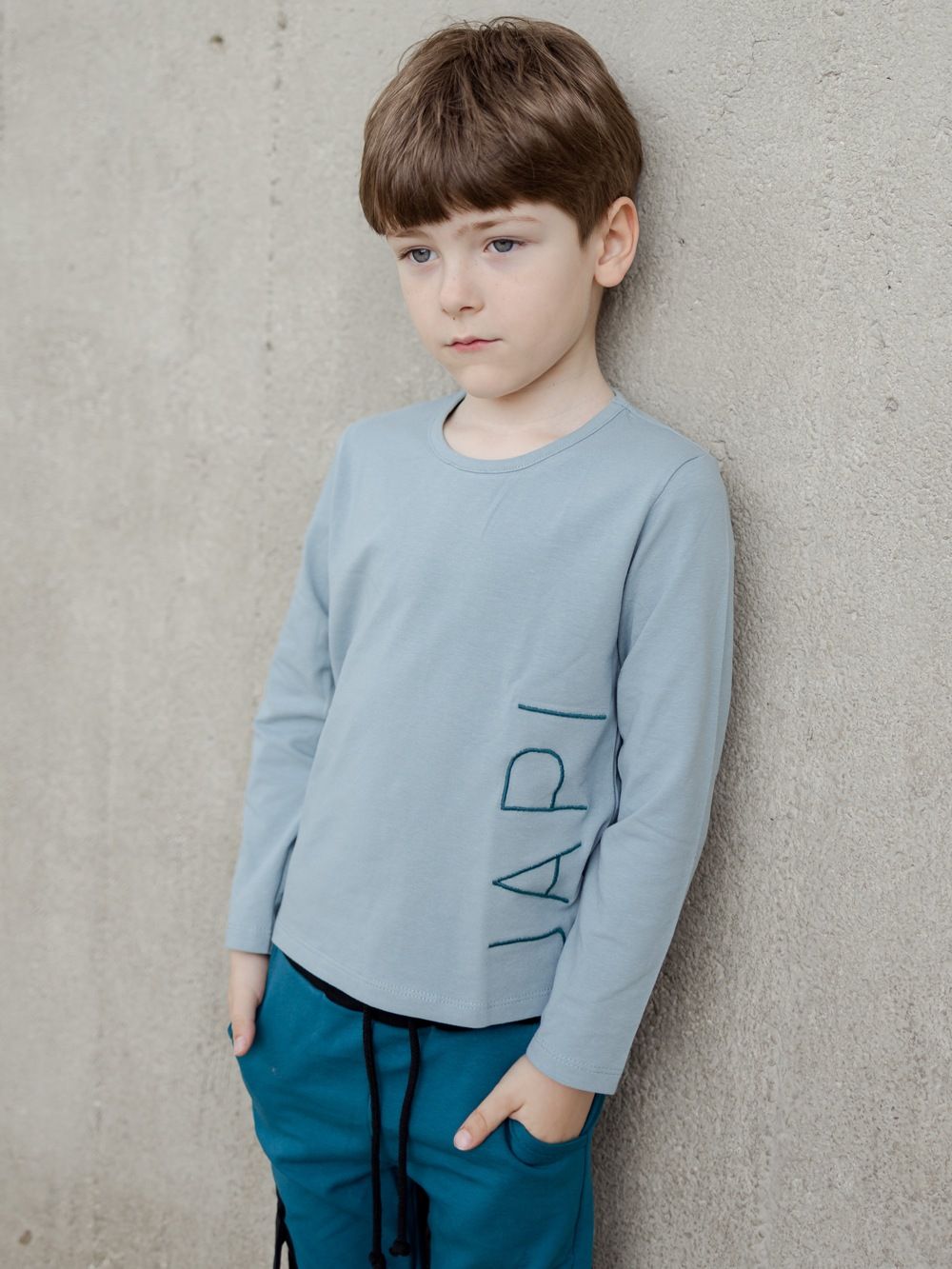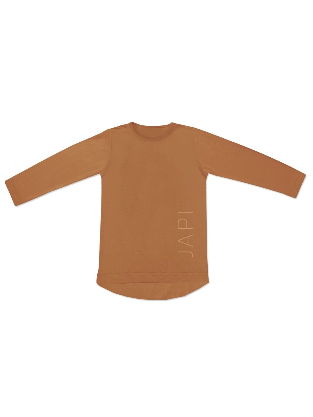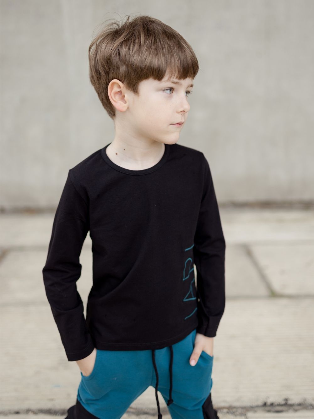 Udobna dječja majica s dugim rukavom za dječake. Jednobojna pamučna majica s prišivkom marke JAPI na boku. Majica za slobodno vrijeme i školu. Zajedno s trenerkom ili kratkim hlačama tvori moderan komplet. Dostupna u tri boje - modra, crna ili smeđa.