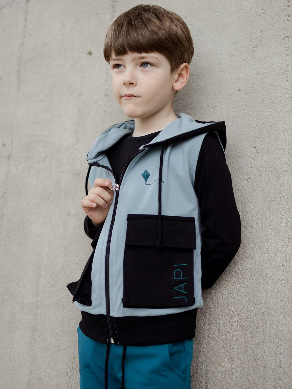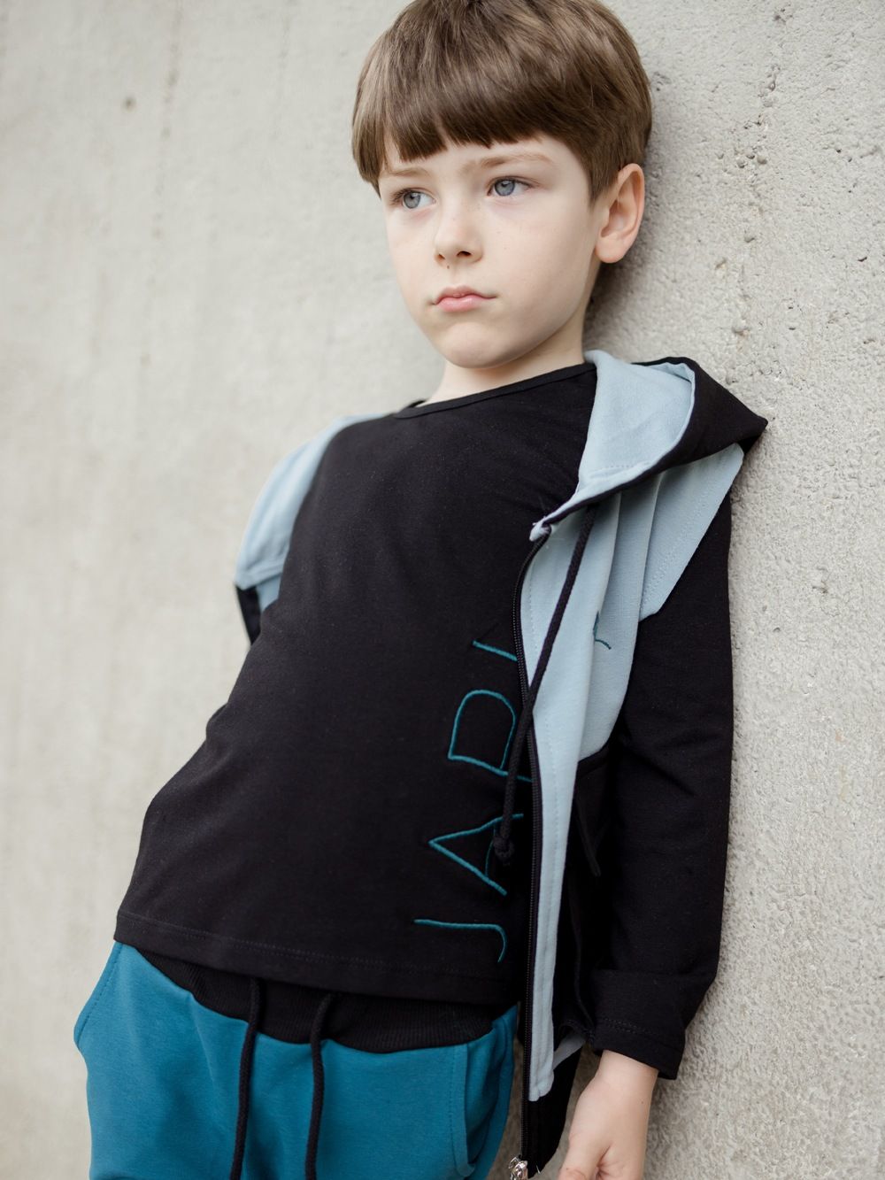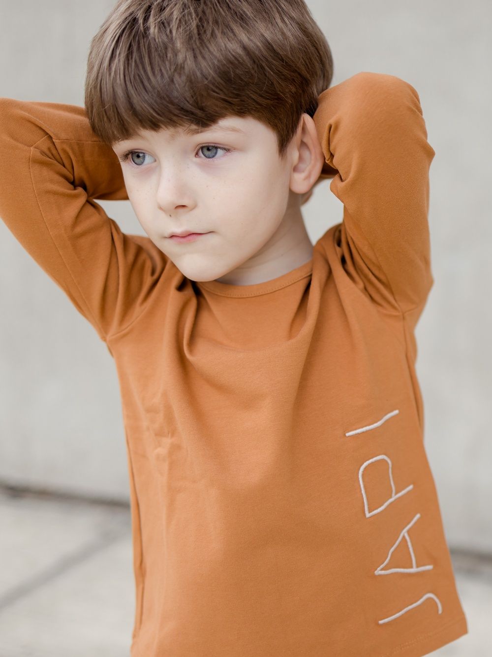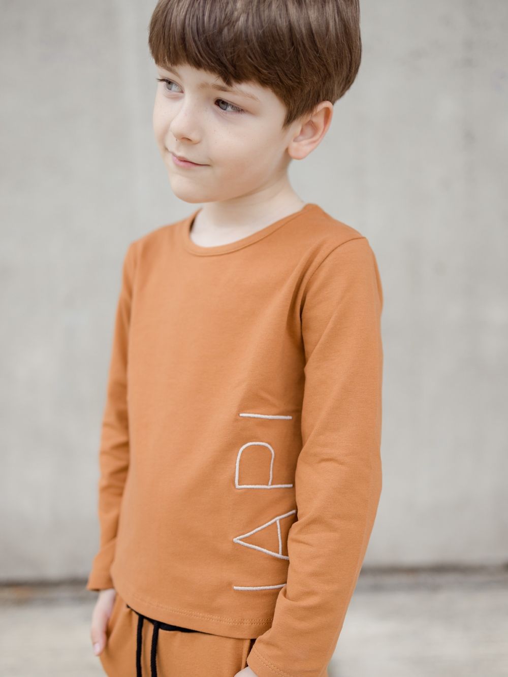 Udobna dječja majica s dugim rukavom za dječake. Jednobojna pamučna majica s prišivkom marke JAPI na boku. Majica za slobodno vrijeme i školu. Zajedno s trenerkom ili kratkim hlačama tvori moderan komplet. Dostupna u tri boje - modra, crna ili smeđa.