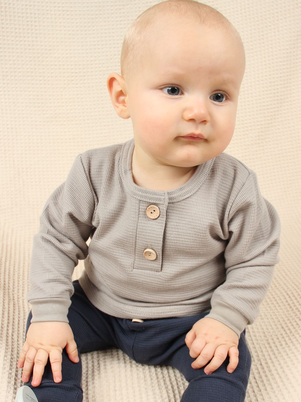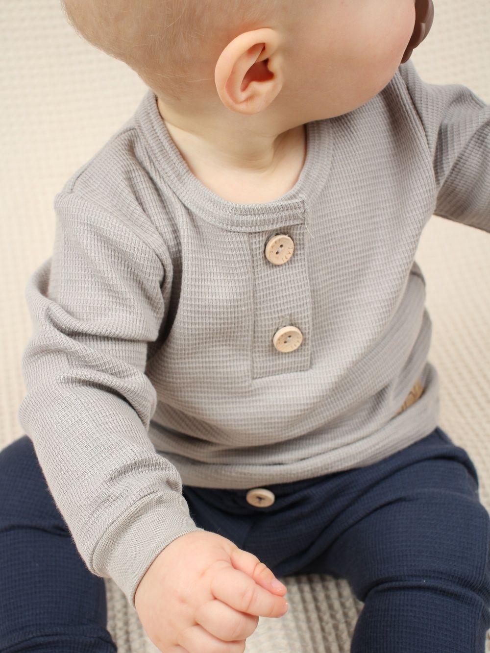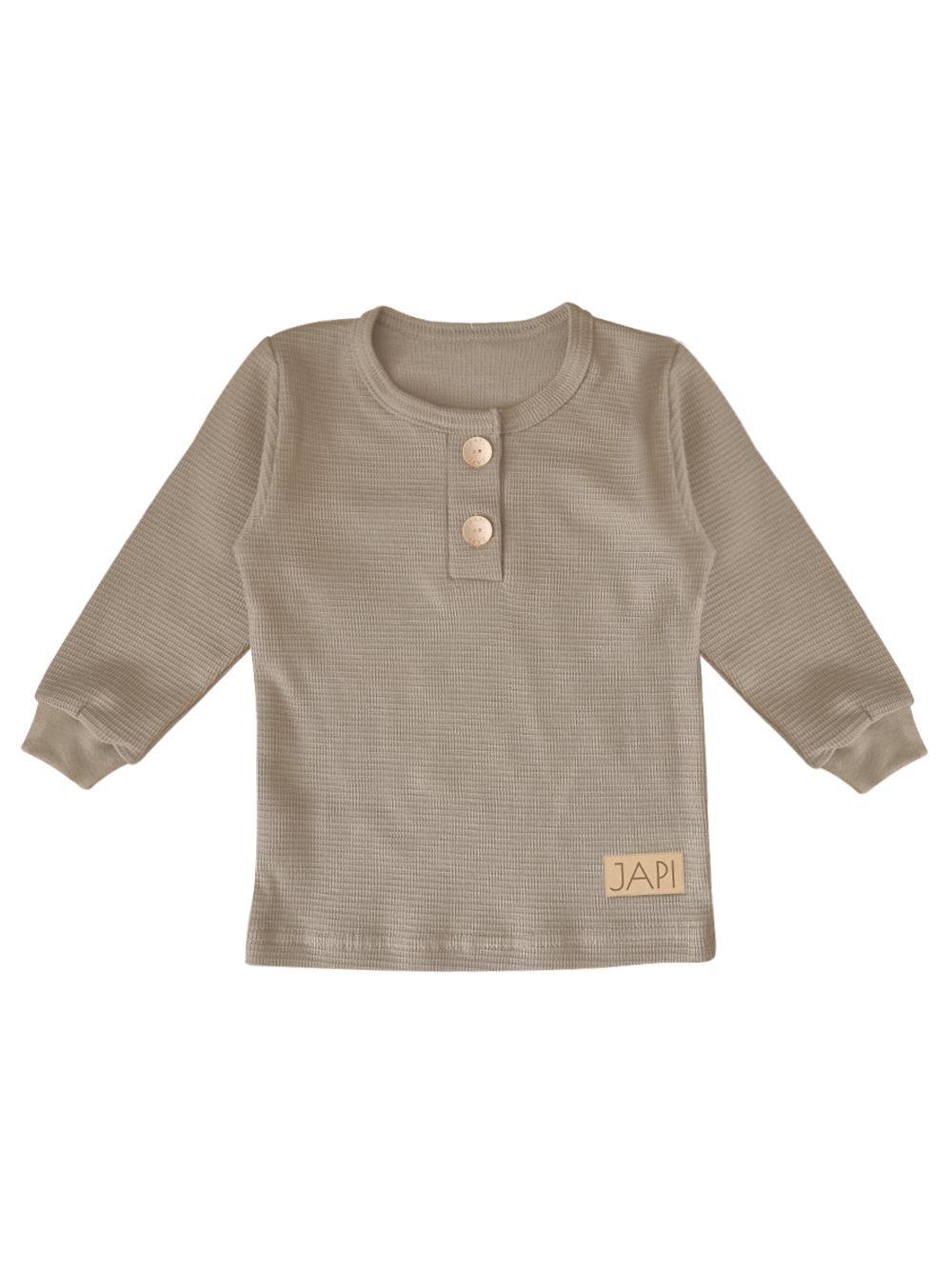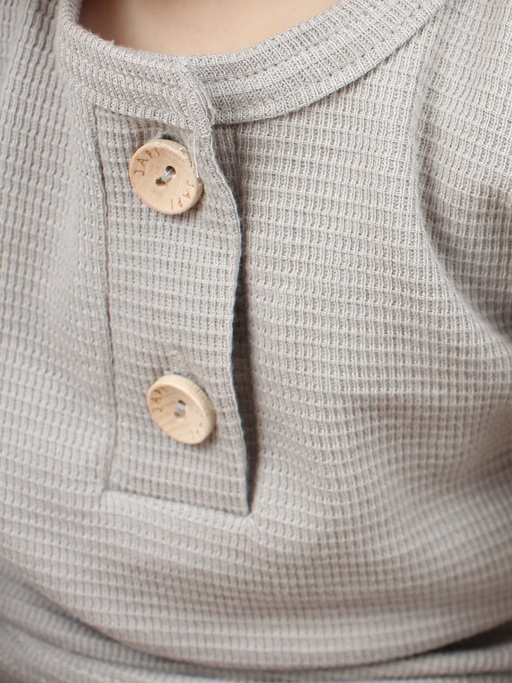 Majica dugih rukava nadopunjena je rubom s drvenim gumbima. Majica kratkih rukava izgleda elegantno i stilski. Majicu možete koristiti ne samo za svakodnevno nošenje, već i za obiteljsko slavlje ili party. Udobno odijevanje osigurano je zahvaljujući kopčanju oko vrata. Naša majica ima visokokvalitetne rubove oko vrata i rukava.
