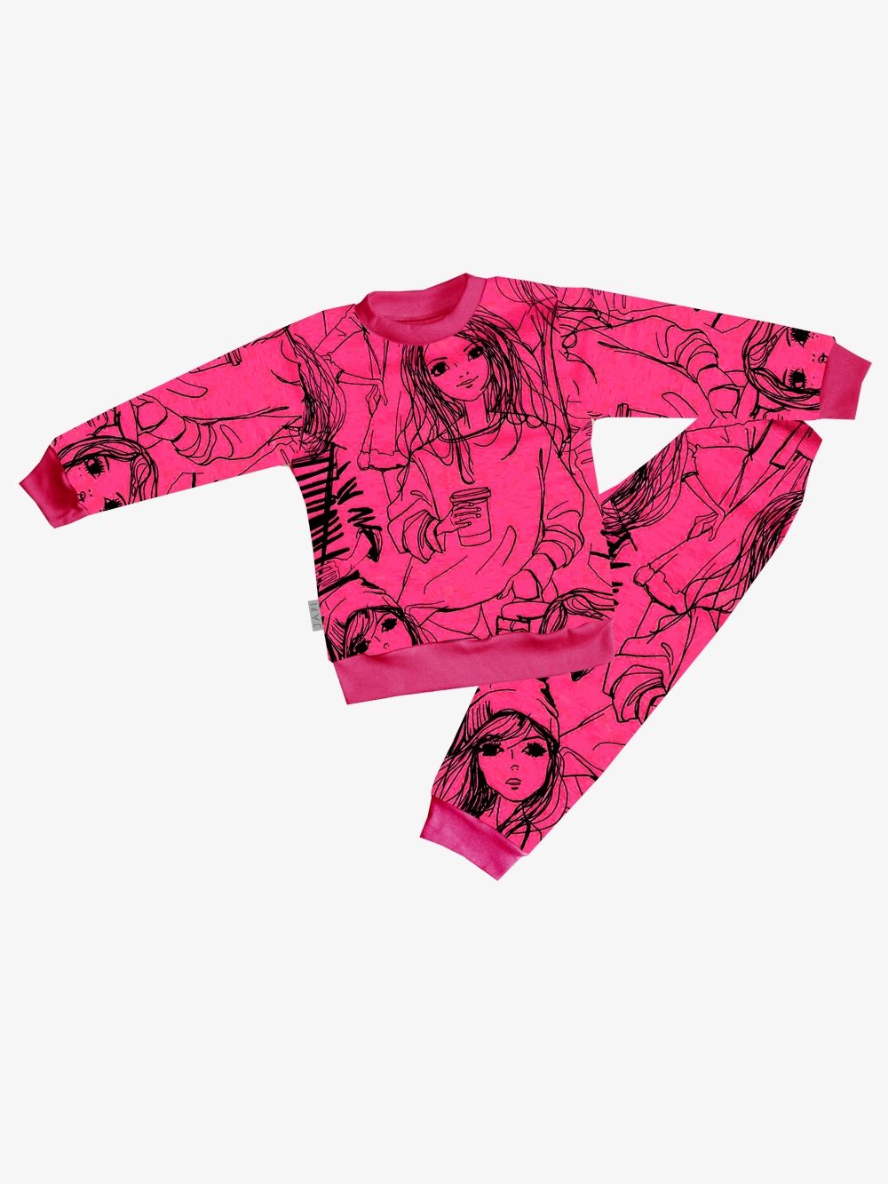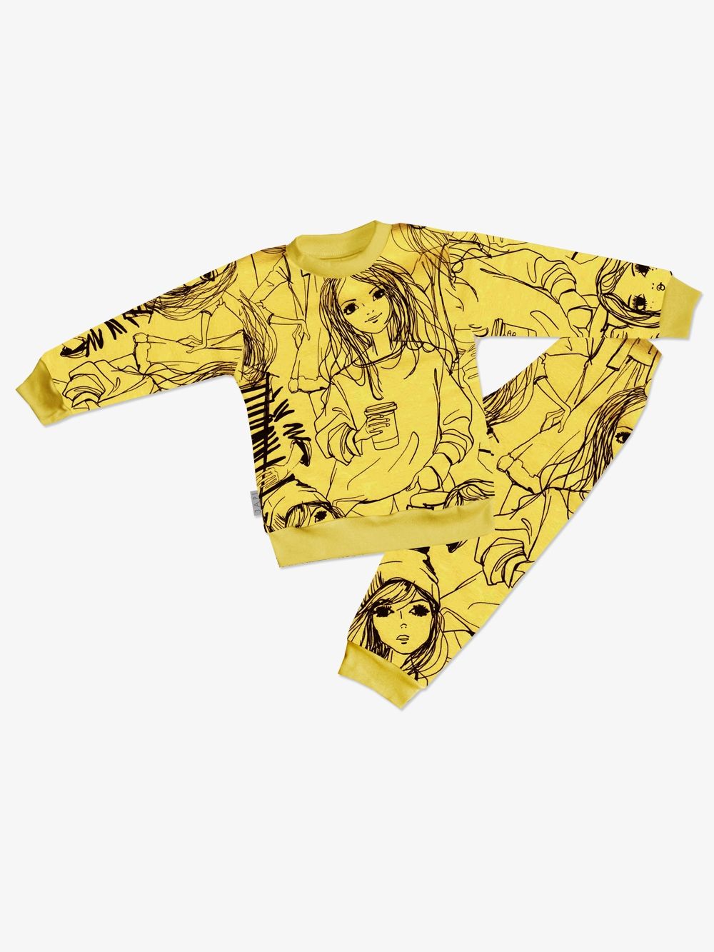 Dvodijelna pidžama za djevojčice u dvije svijetle boje. Izrađena od 100% pamučne tkanine s patentima na nogavicama i rukavima. Pidžama je dostupna u ciklama i žutoj boji s elegantnim printom u crnoj boji. Udoban kroj pidžame jamči ugodan san. Omiljen komad i za vrtić.