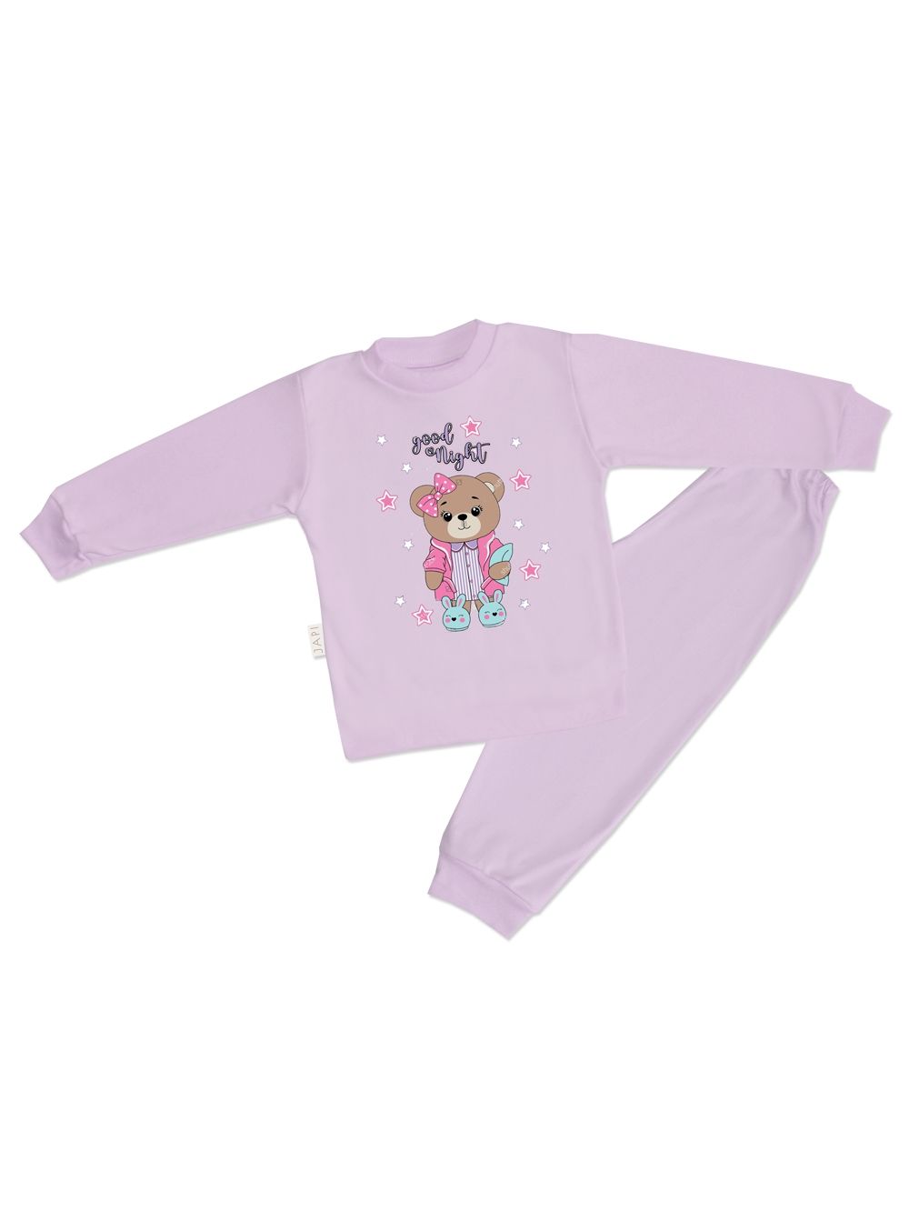 Udobna i moderna dječja pidžama za djevojčice GOOD NIGHT savršen je izbor za miran i kvalitetan san. Gornji dio ukrašen je simpatičnim natpisom „Good Night“ koji stvara ugodnu atmosferu pred spavanje. Izrađena od mekane pamuka, pidžama osigurava maksimalnu udobnost i prozračnost tijekom cijele noći. Idealna je za svakodnevno spavanje i vikend opuštanje kod kuće. Pidžama GOOD NIGHT odličan je poklon za male djevojčice.