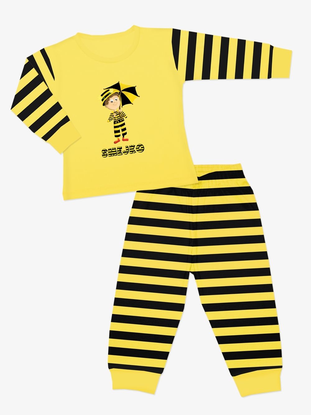 Razveselite svog sina ili unuka prekrasnom, veselom pidžamom sa Smješkom. Prugasta žuto-crna pidžama za dječaka od 100% pamuka ugrijat će ga i ugoditi mu. Kvalitetan kroj i certificirani materijali čine ga praktičnim komadom za male nesretnice.