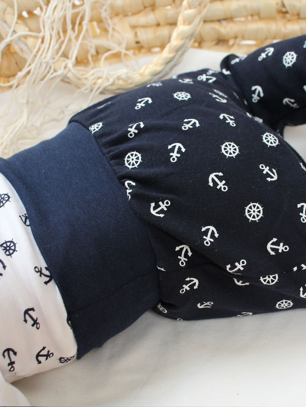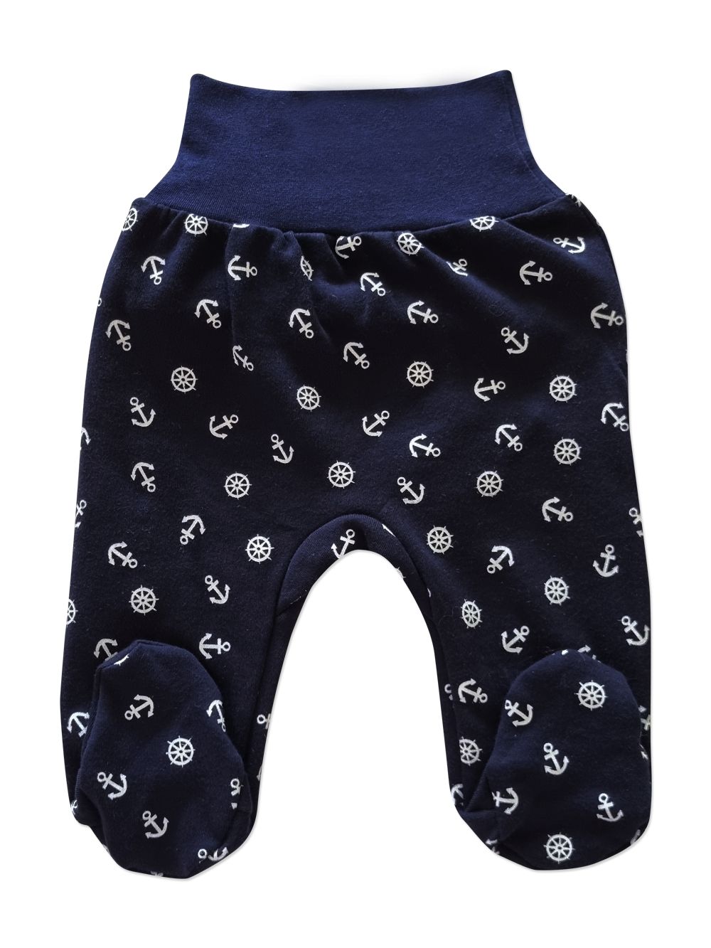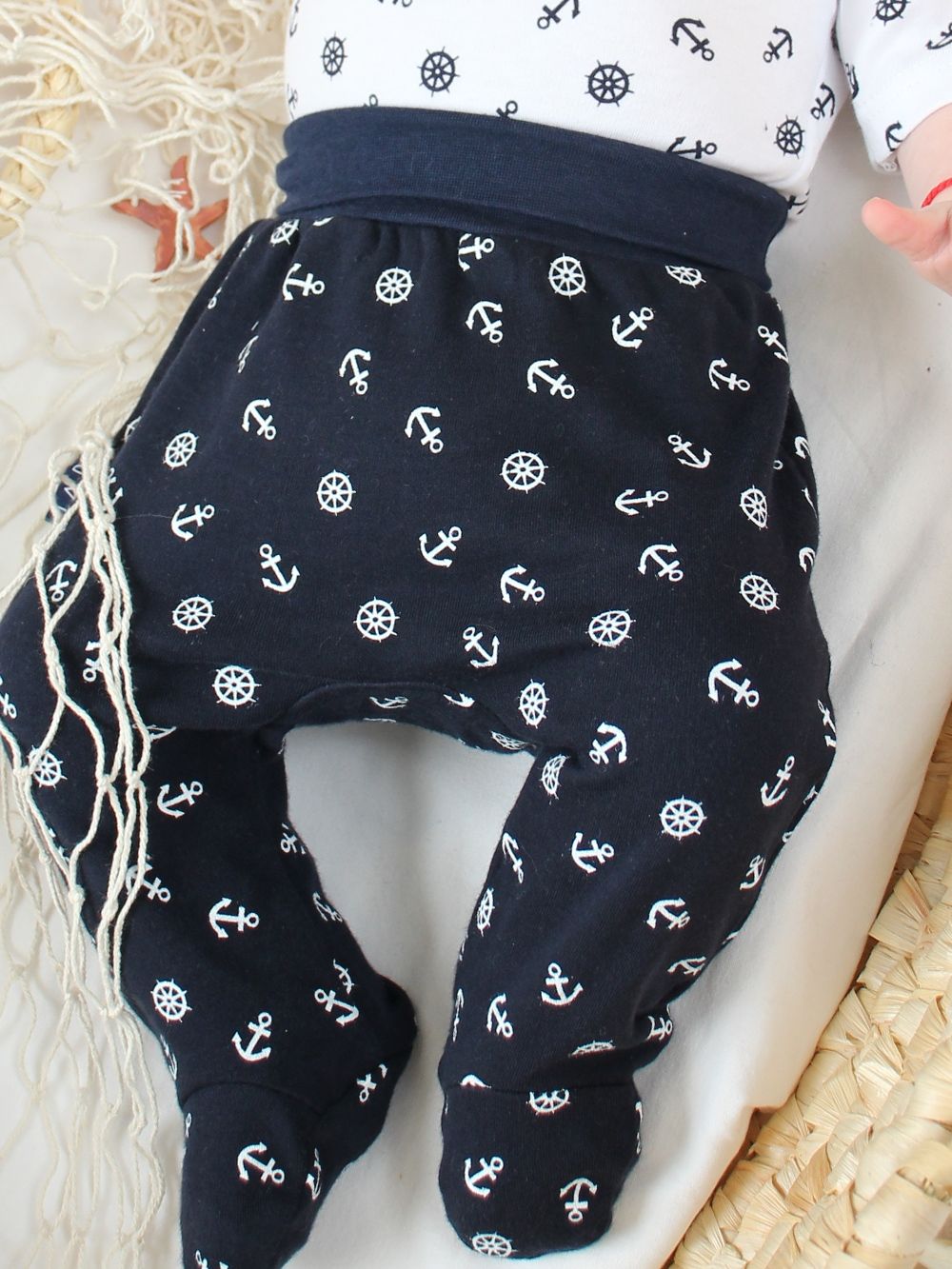 Poluhlače za bebe Anchor idealne su za svakodnevnu udobnost vaše bebe. Izrađene od visokokvalitetnog pamuka, osiguravaju mekoću i udobnost tijekom cijeloga dana. Uzorak s sidrom dodaje poluhlačama veseo mornarski stil, prikladan za dječake i djevojčice. Elastični pojas olakšava mijenjanje pelena i oblačenje. Dostupne u dvije boje - bijeloj i tamnoplavoj, lako se kombiniraju s ostalom odjećom. Ovaj proizvod je izdržljiv i jednostavan za održavanje, što ga čini idealnim za svakodnevnu uporabu.