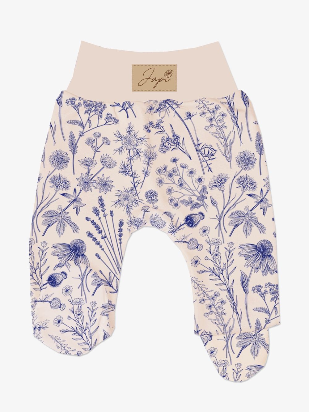 Udobne dječje čarapice do struka. Pamučne čarapice do struka od elastičnog pamuka, za male bebe. Širi pas, koji se prilagođava te ne steže bebu. Provjeren kroj, koji je kod nas omiljen. Čarapice do struka iz kolekcije Herbarium su sa lijepim tiskom na cijeloj površini, s motivom cvijeća i biljaka. Možete ih kombinirati s dječjim jednobojnim bodi.
