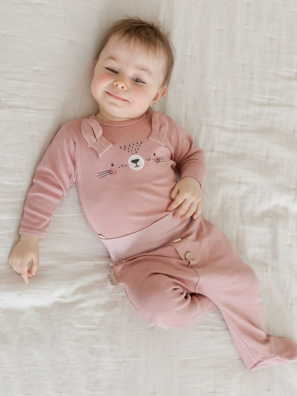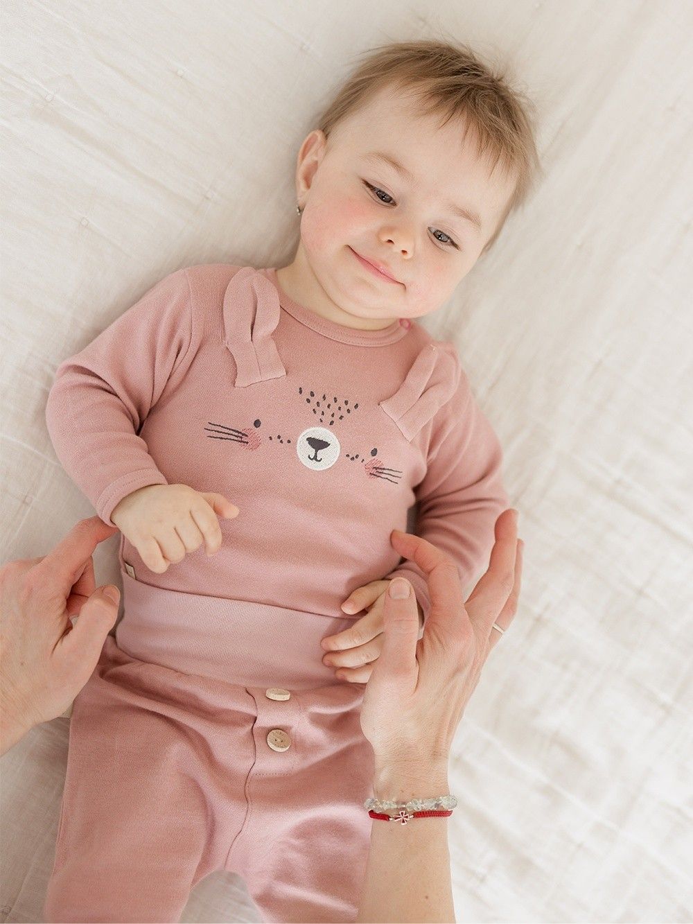 Upotpunite polukombinezoni dječjim bodijem i imate kompletan set za bebu, primjerice čak i u rodilištu. Možete ih pronaći u ružičastoj i bež boji. Imaju uzorke u drugim kolekcijama, pa pogledajte našu ponudu.