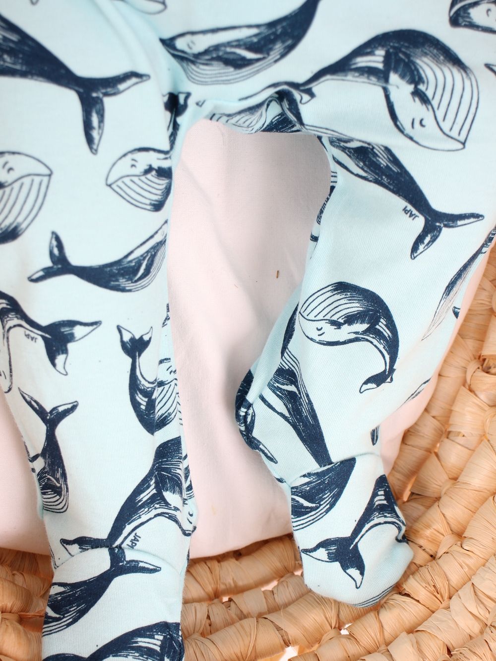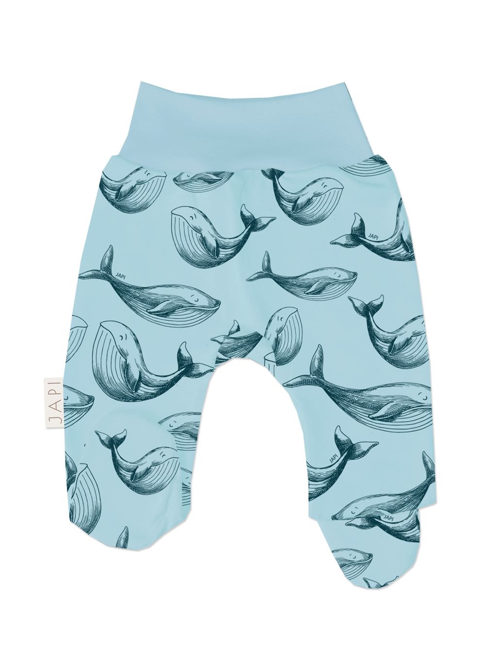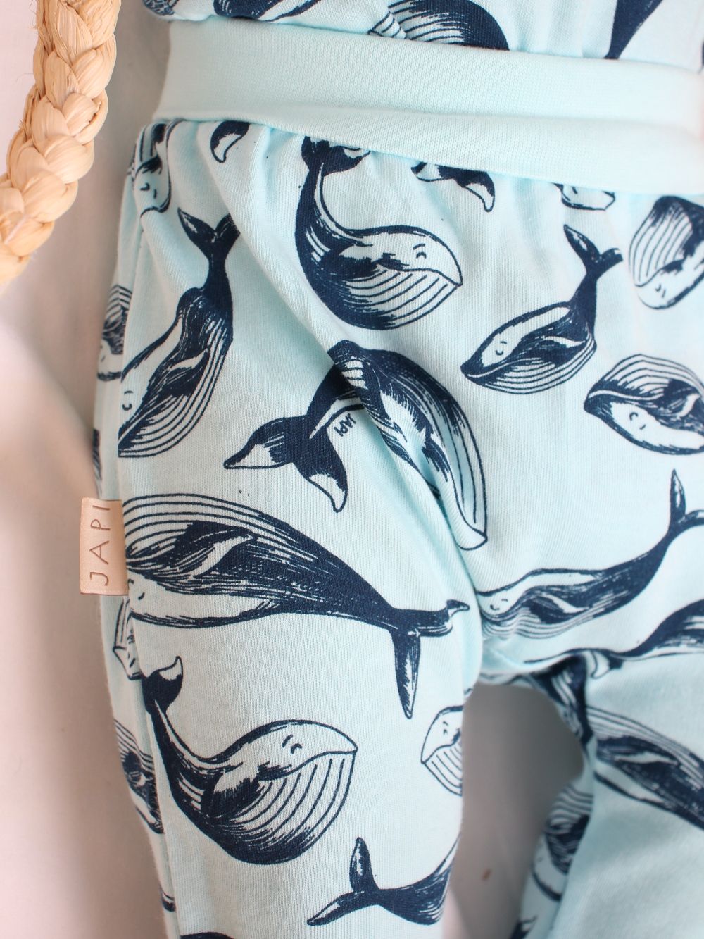 Polukombinezon iz kolekcije WHALES idealan je za svakodnevno nošenje. Mekani i udobni materijal nježan je prema dječjoj koži. Simpatičan uzorak kita dodaje šarm. Elastični pojas osigurava udobno nošenje i jednostavno oblačenje.