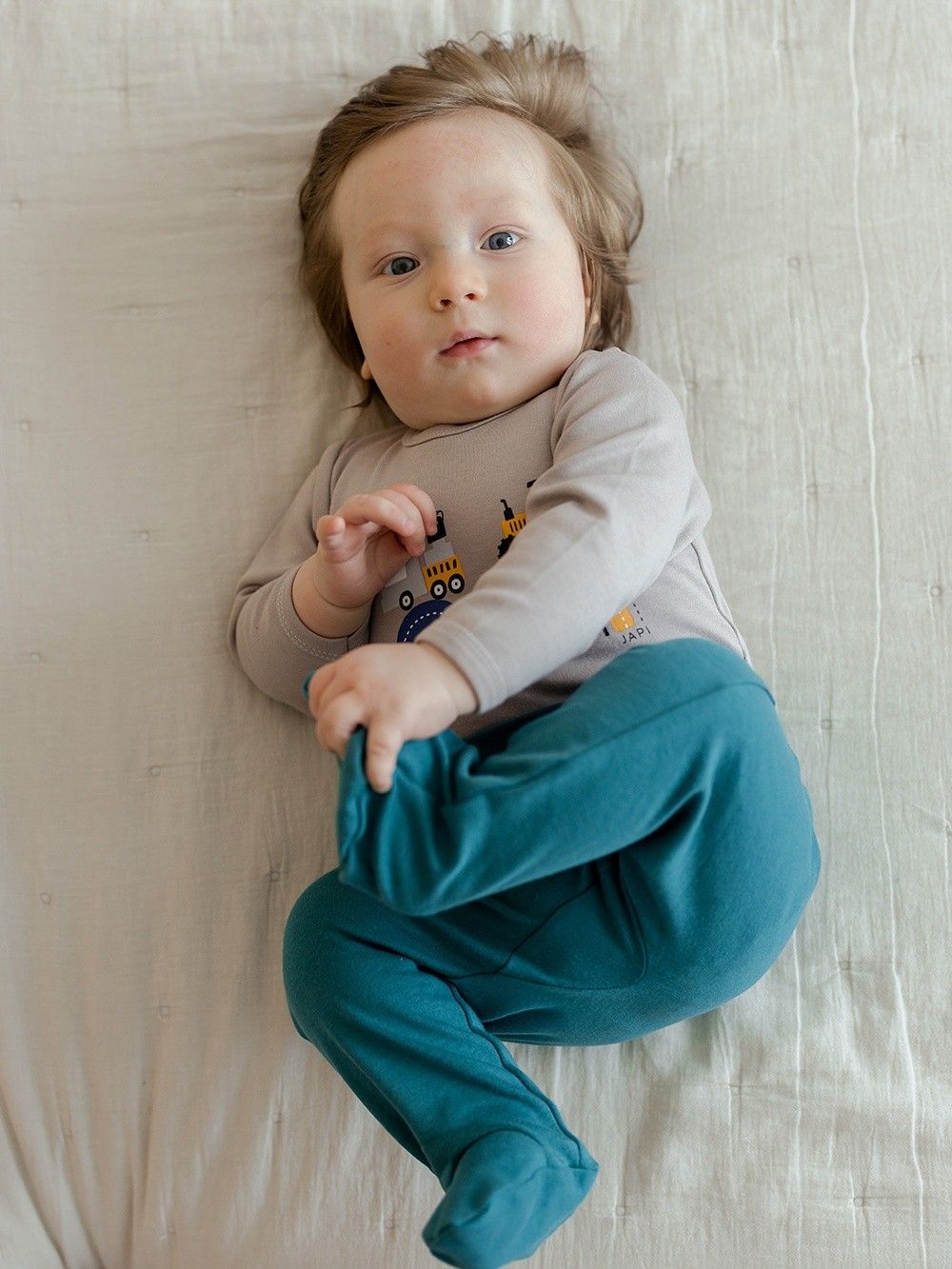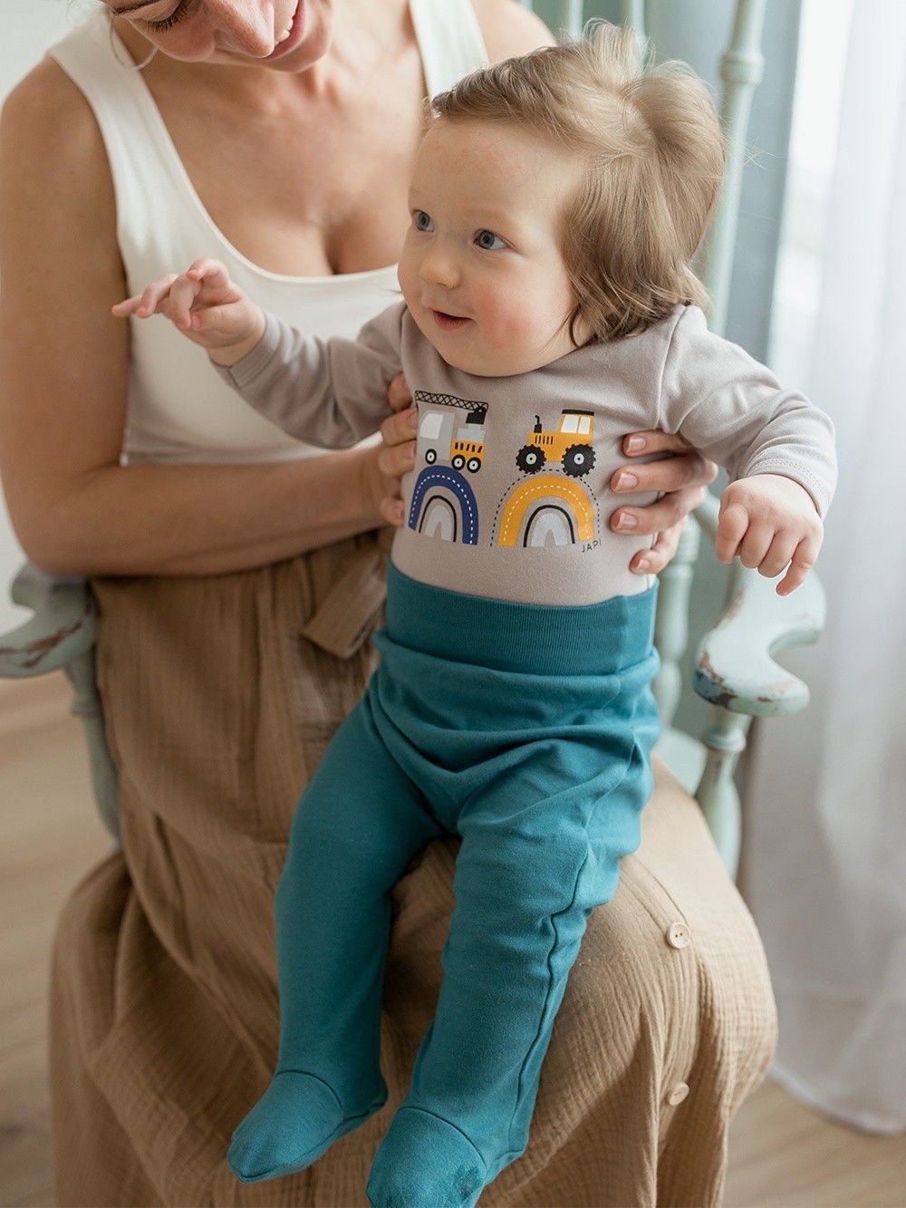 Praktičan komad dječje garderobe koji ćete sigurno cijeniti. Polukombinezoni štite bebina stopala u cjelini. Udoban širi pojas s elastičnom trakom ne steže bebu. Print na leđima s radnim strojevima lijep je dodatak koji ovaj outfit čini originalnim.