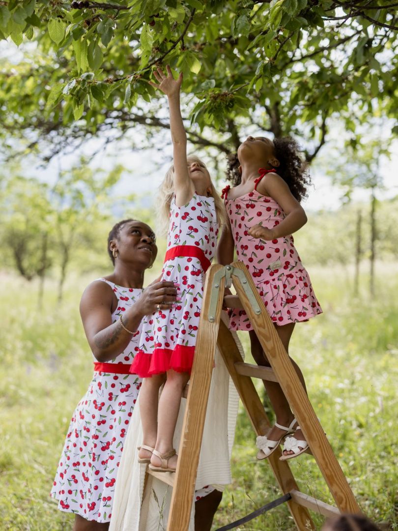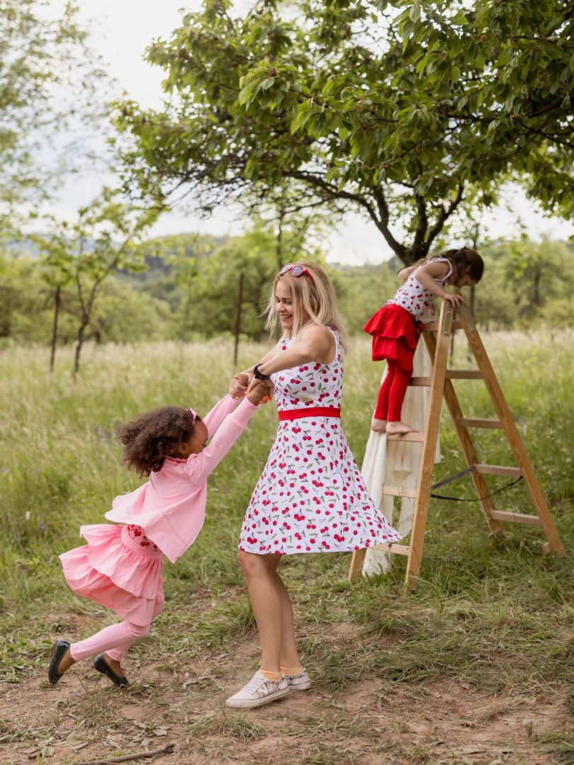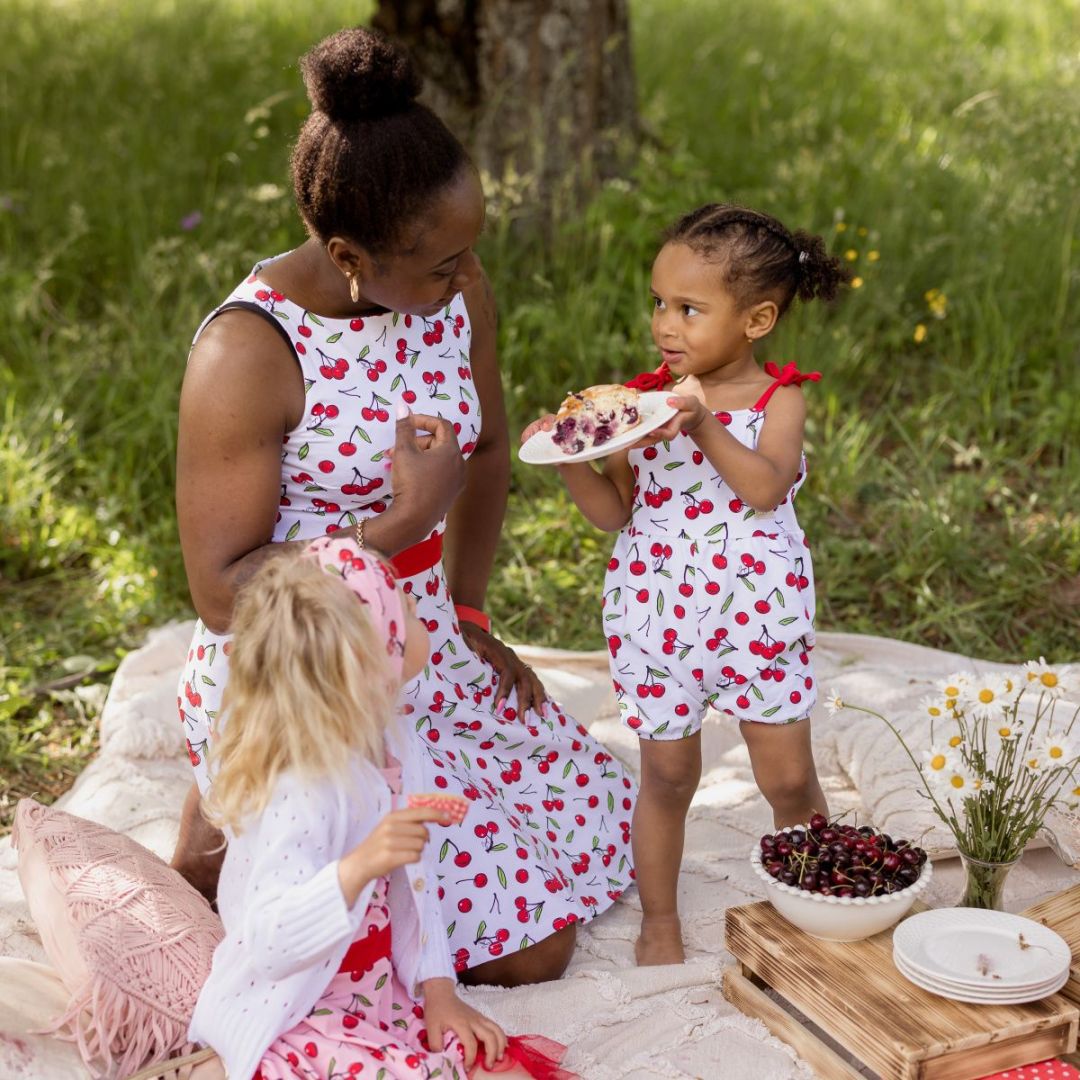Osim toga smo za njih već mjesecima unaprijed pripremali novu slatku kolekciju odjeće s motivom višnji. Kolekciju Cherry. Sve se to spojilo i sjelo na svoje mjesto kao puzzle. Piknik pod stablima višnji, s višnjama i odjećom s motivom višnji. Veselo, slatko popodne u bojama višnje. Ovaj piknik je pripadao djeci - manjoj, većoj, kovrčavoj, hrđavoj, tamnoj i bijeloj. Jer sva djeca zaslužuju ljubav i pažnju.