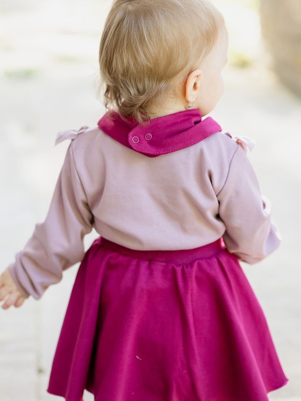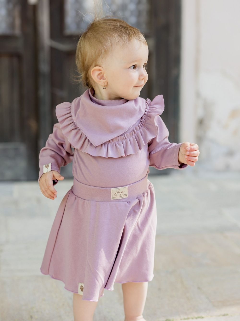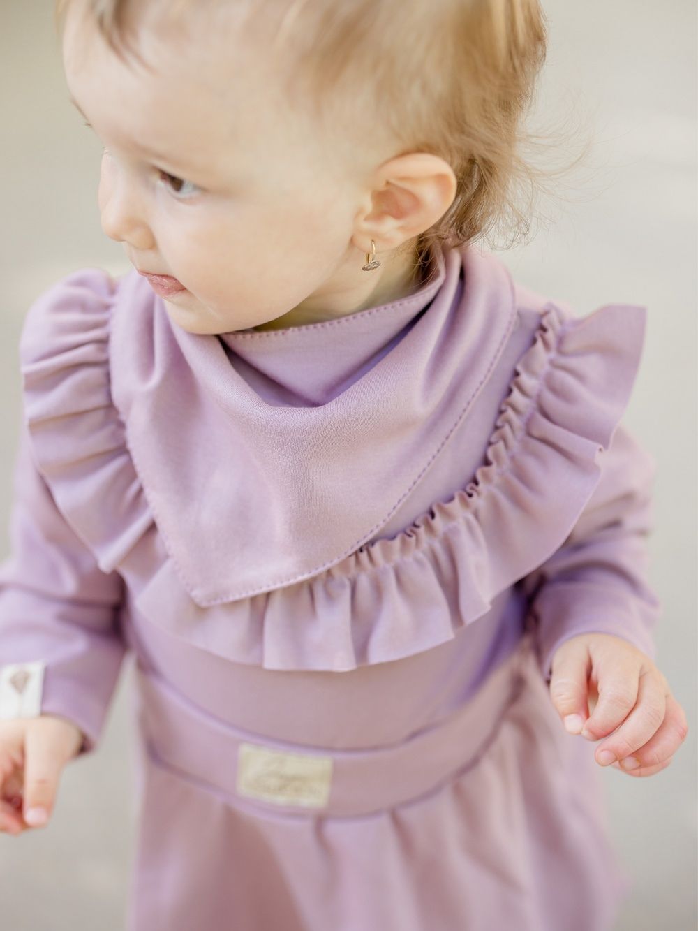 Dječji pamučni podbradnik u dvije nijanse ružičaste. Praktično pomagalo za malu djecu kojima izlaze prvi zubi. Štiti odjeću od slina i zaprljanja. Proizveden od certificiranih materijala, pogodan za djecu od rođenja.