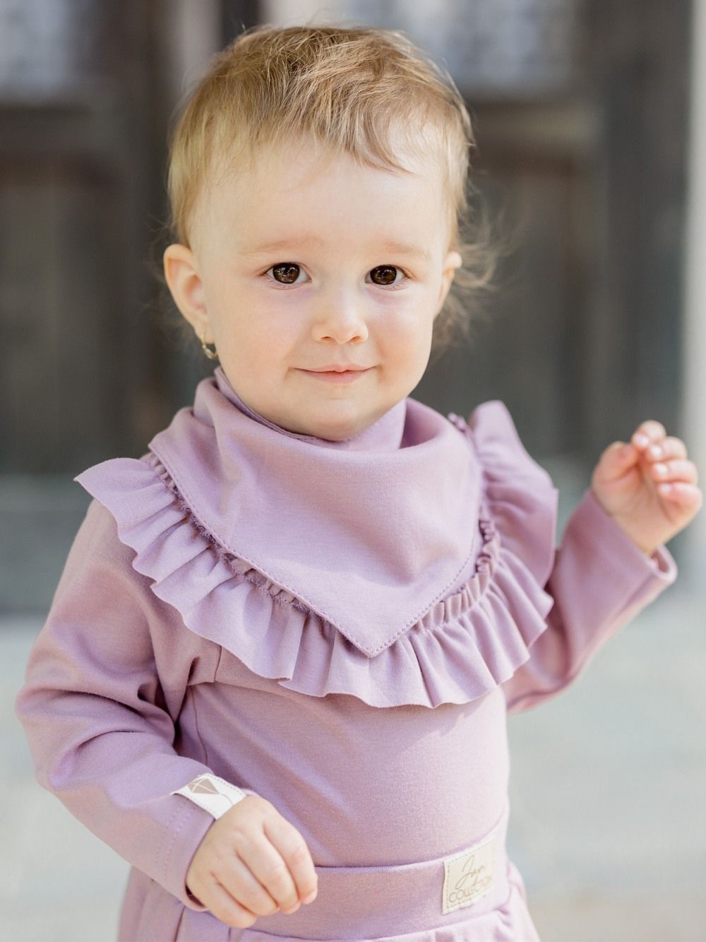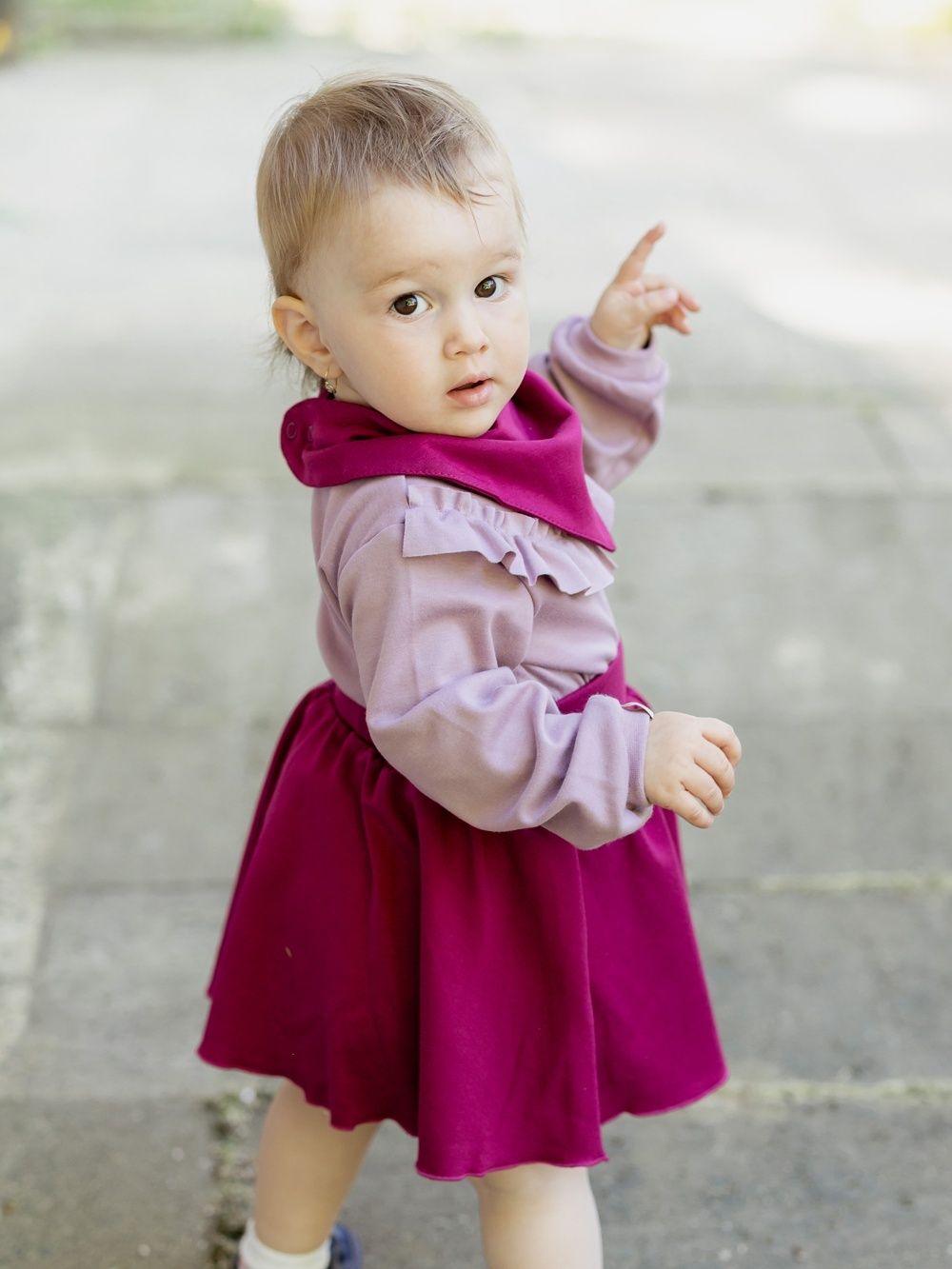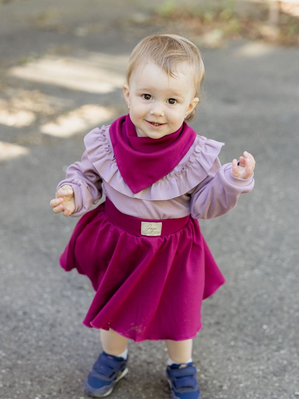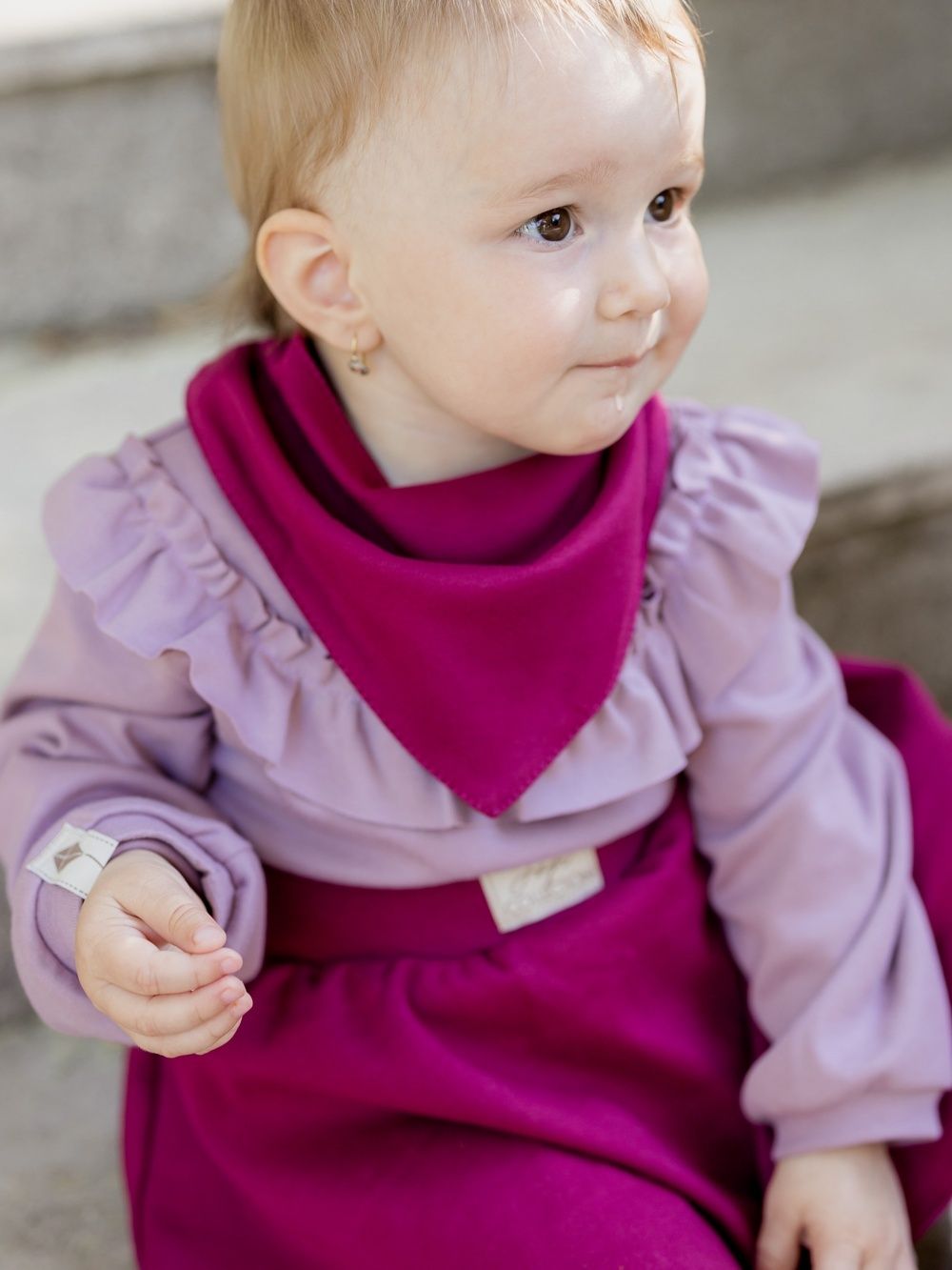 Dječji pamučni podbradnik u dvije nijanse ružičaste. Praktično pomagalo za malu djecu kojima izlaze prvi zubi. Štiti odjeću od slina i zaprljanja. Proizveden od certificiranih materijala, pogodan za djecu od rođenja.