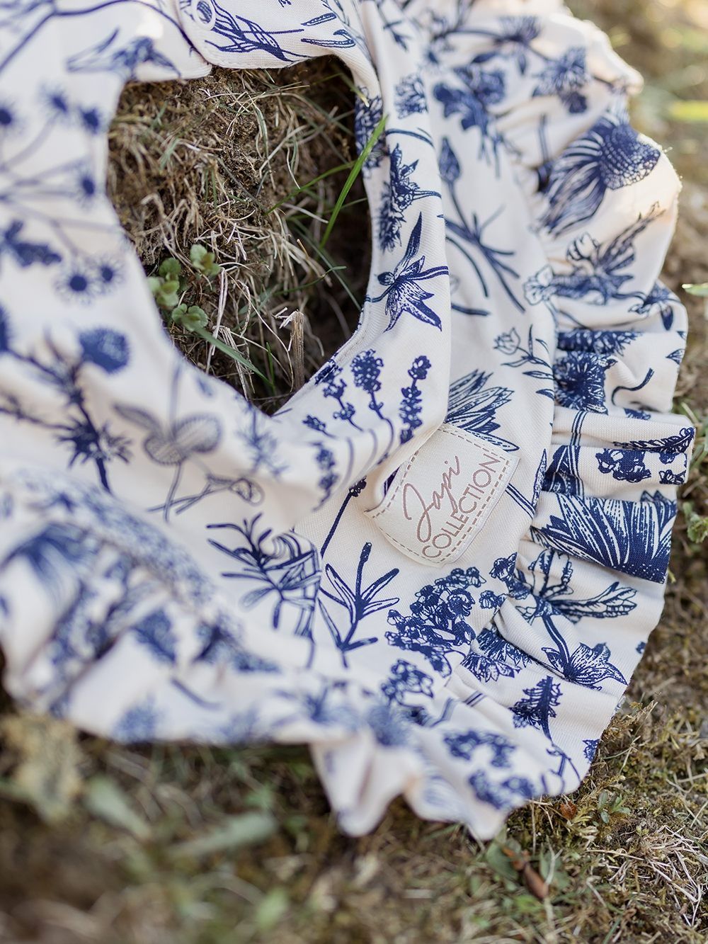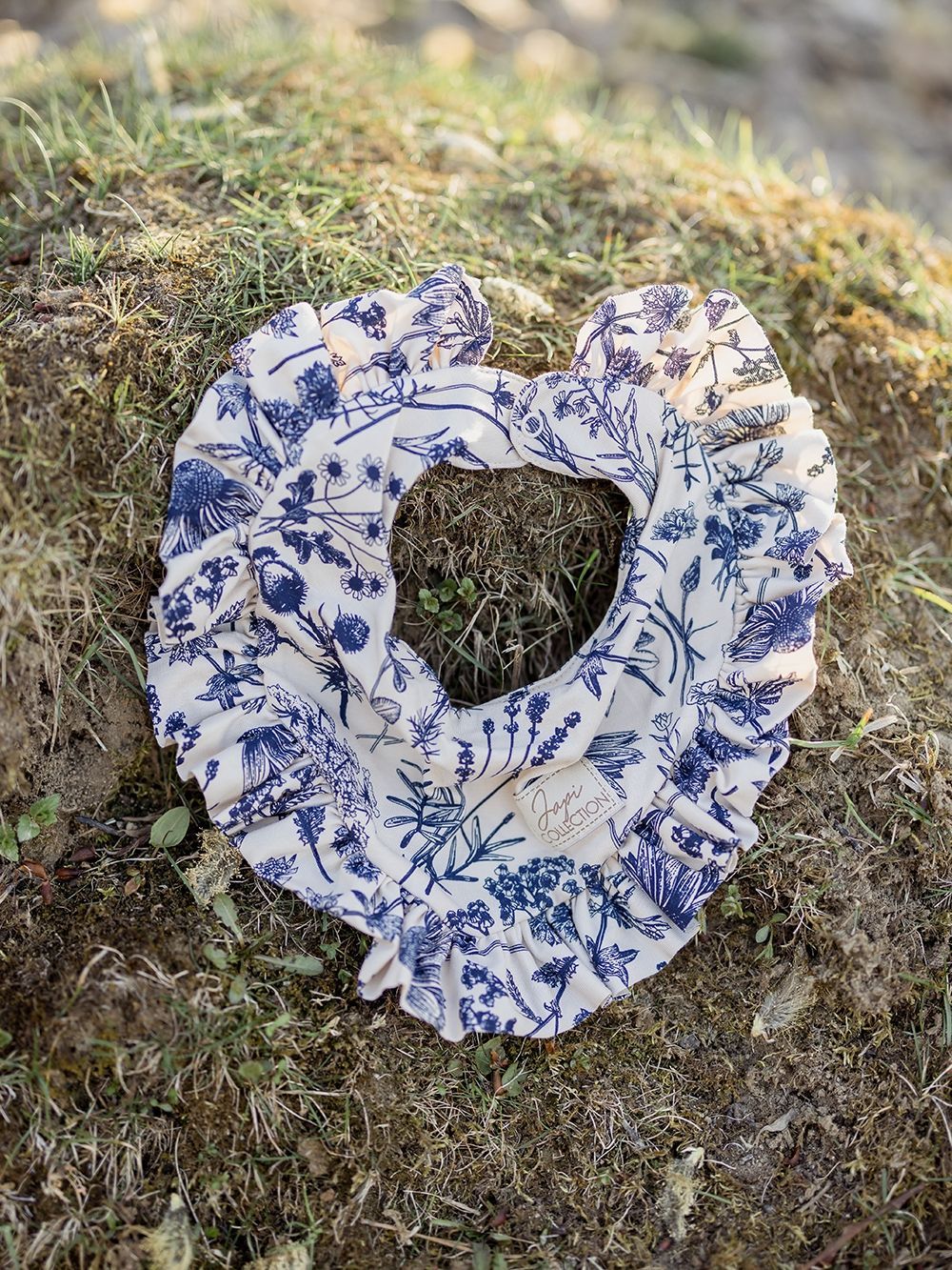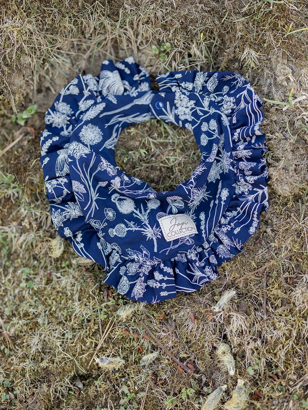 Krasan dječji podbradnik, koji štiti odjeću. Pamučni podbradnik ili marama su krasan dodatak i praktičan pomoćnik. Oblik trokuta s volanskim krajem. U kolekciji Herbarium smo kreirali vlastiti tisak. Biljke na kontrastnoj podlozi. Modre na krem boji ili obrnuto.