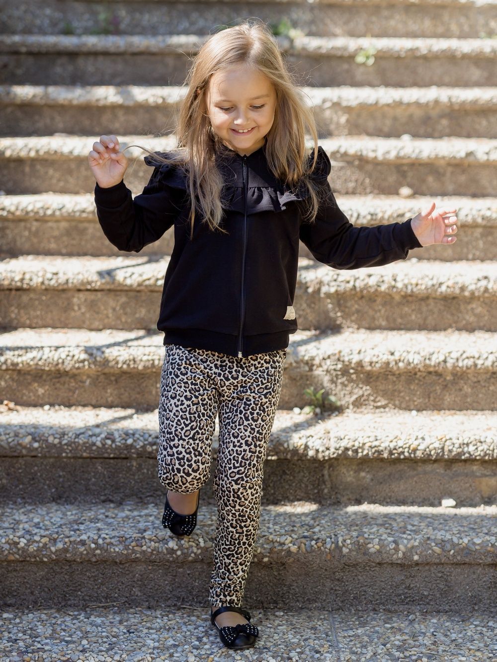 Tajice s cijelim printom s uzorkom geparda. Popularnog udobnog kroja s gumicom u struku. Pamučni materijal koji je vrlo udoban. Tajice su vrlo praktične za vrtić i školu. Neobične su i lako se kombiniraju s jednobojnima komadima. Dodajte majicu dugih rukava i imate prekrasan outfit čak i za manju obiteljsku proslavu.