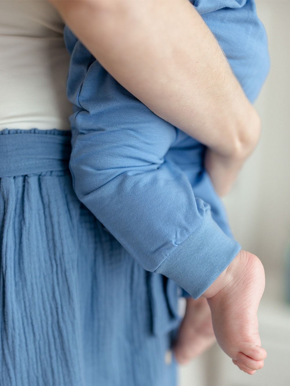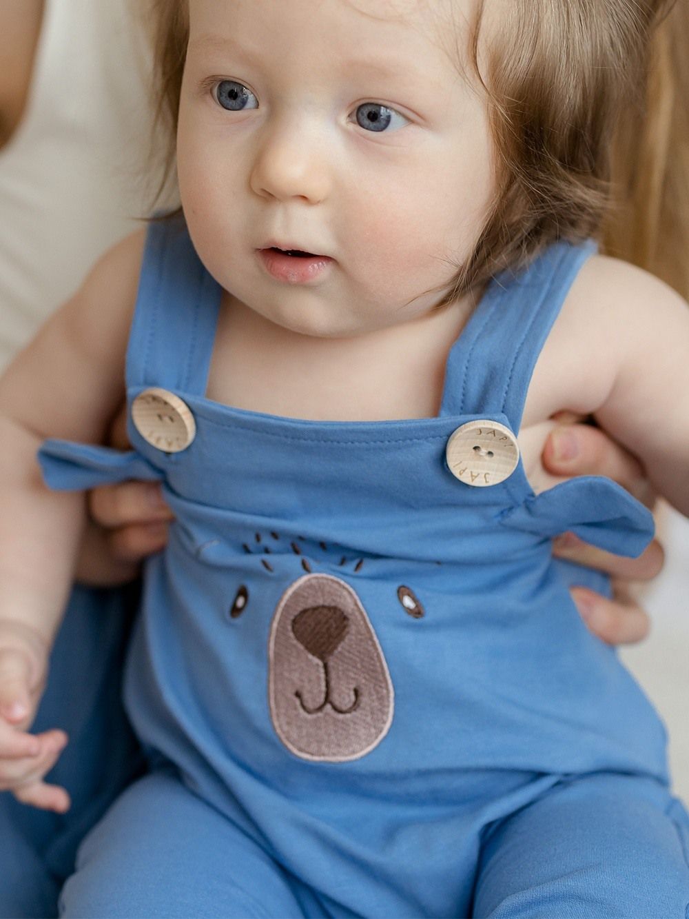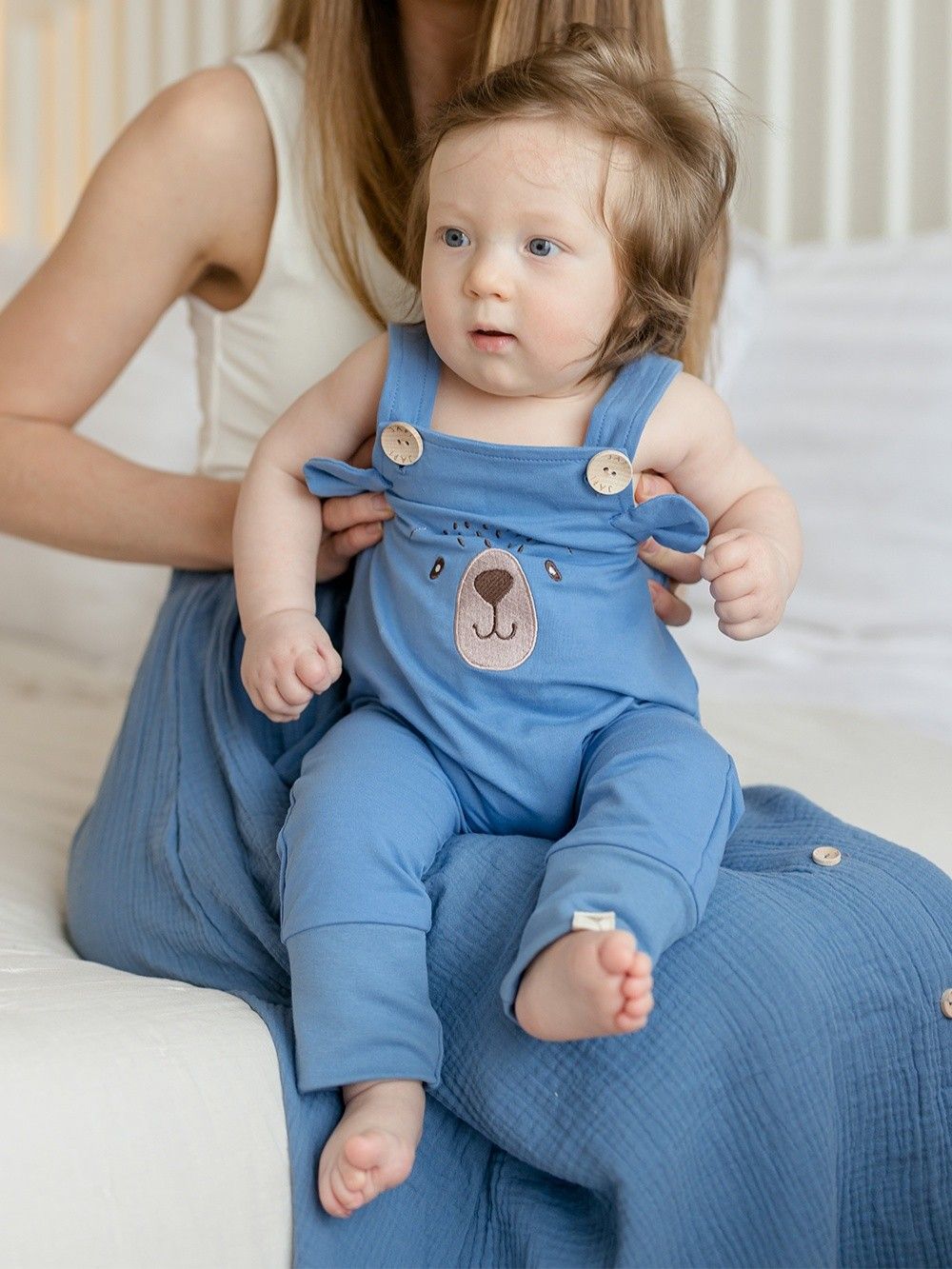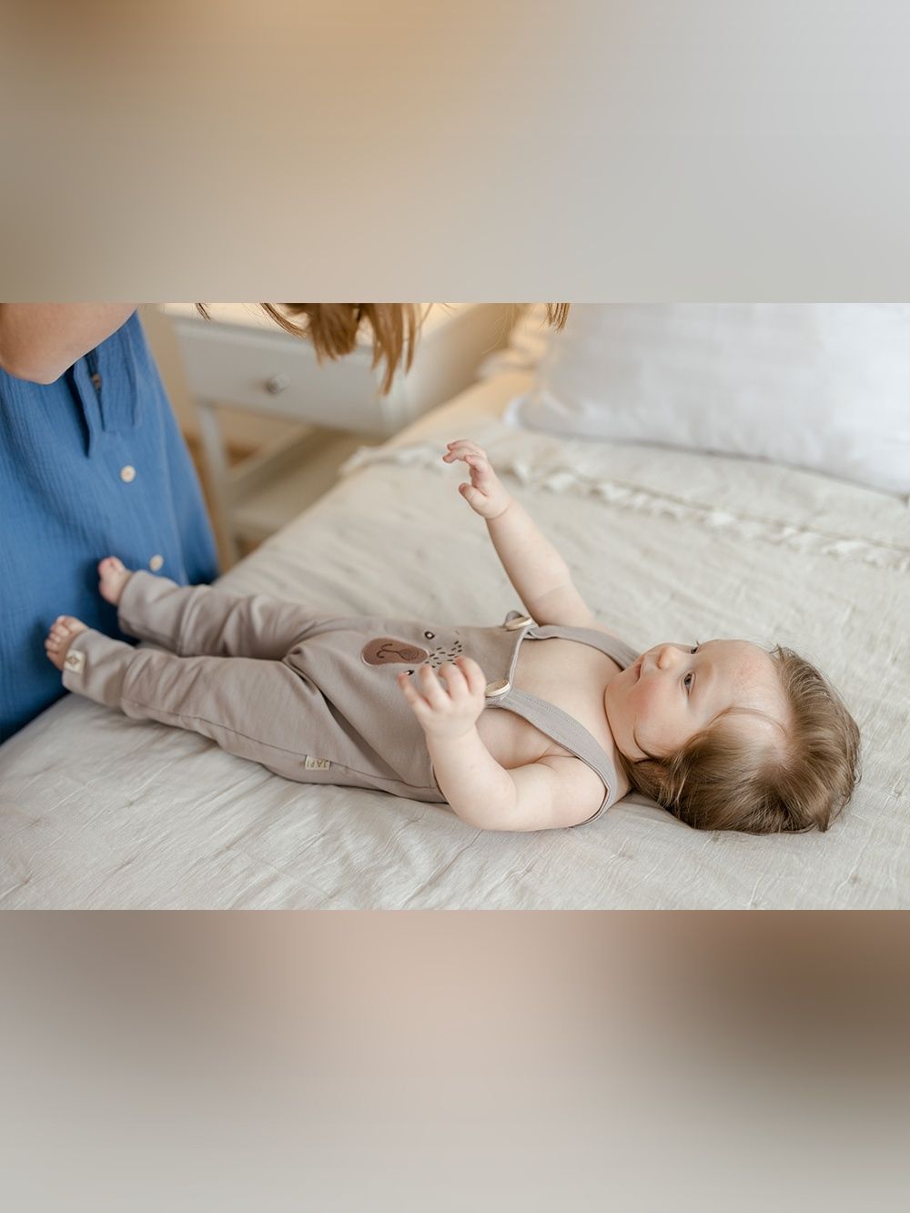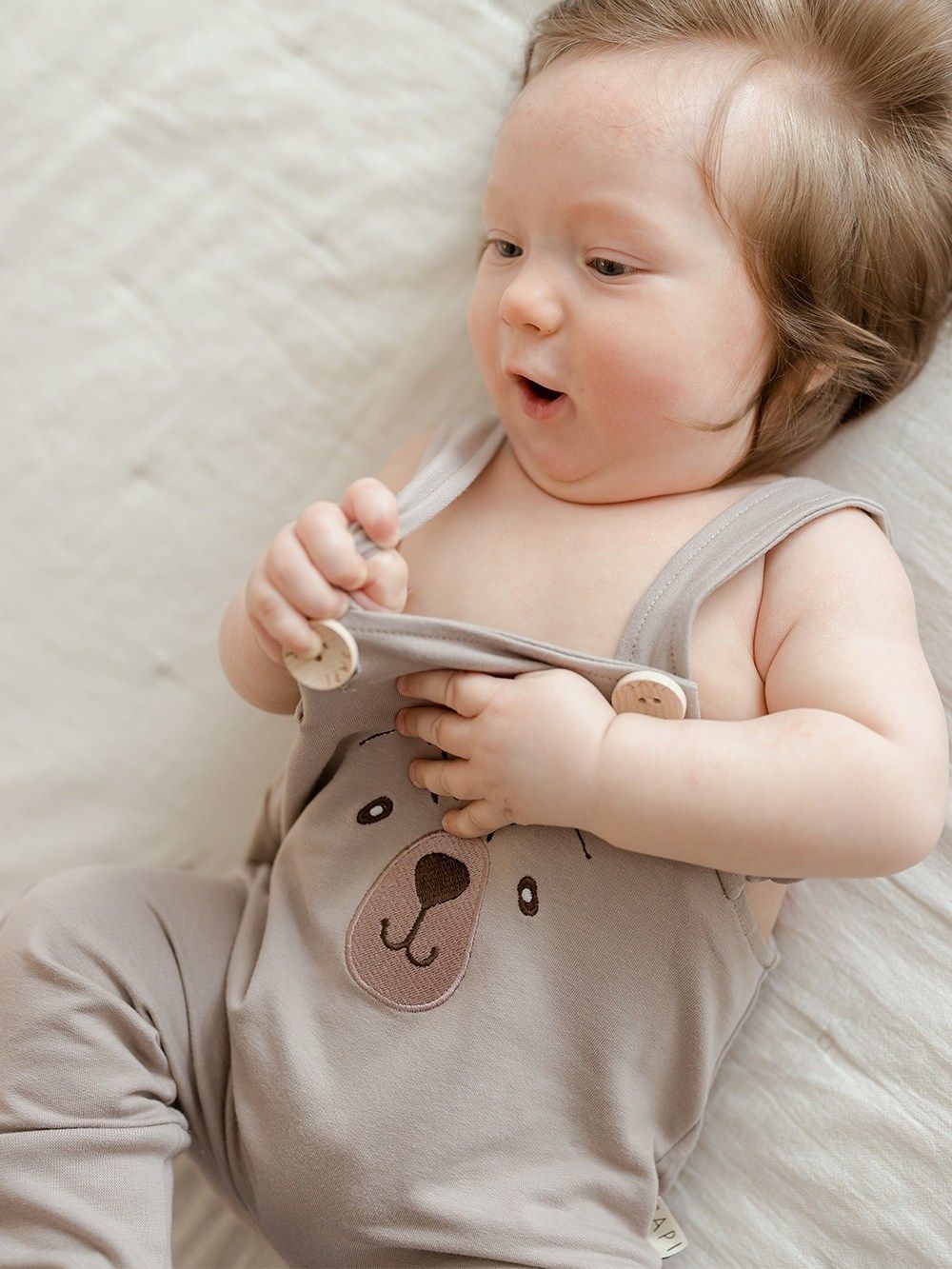Malim istraživačima zasigurno će se svidjeti ovaj elegantni medo. Zadivit će ih svojim licem i našivenim ušima na prednjem dijelu. Mame će cijeniti kvalitetan materijal i udoban kroj. Šire patente možete smotati na donji dio hlača po potrebi. Hlače se kopčaju drvenim gumbima na ramenima.