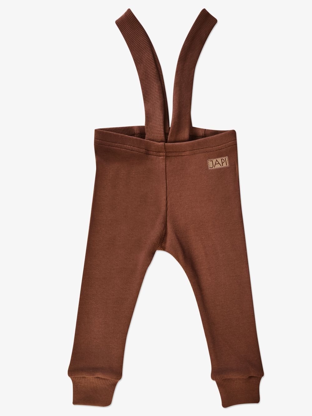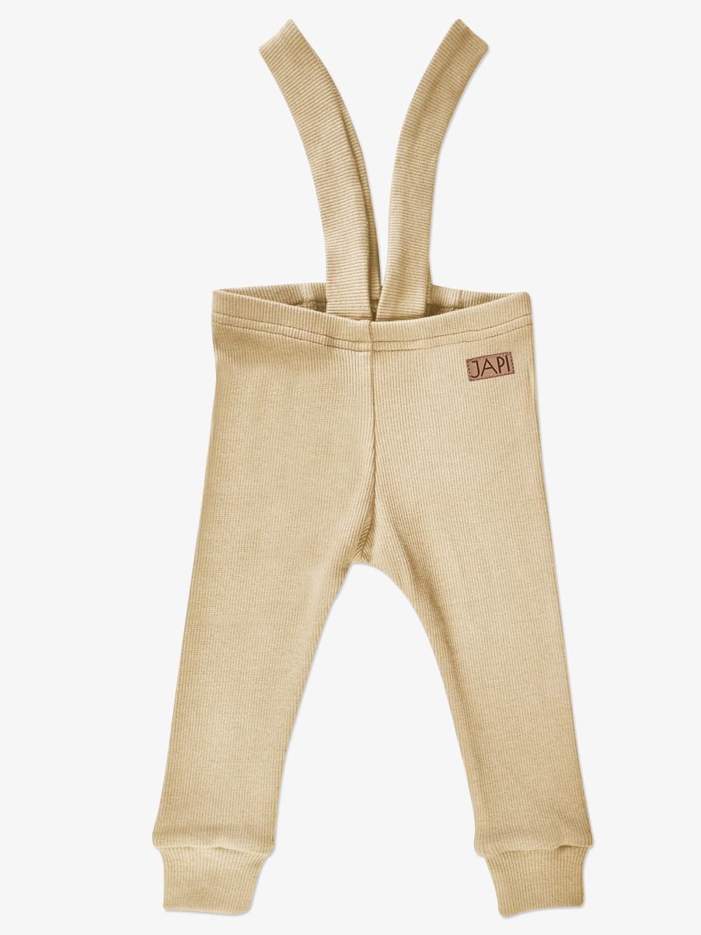 Ugodan materijal, pogodan za svakodnevno nošenje. Udobne naramenice drže hlače na mjestu, te su tako pogodne i za djecu, koja počinju puzati. Naći ćete ih u četiri zemljane boje. Možete ih kombinirati s ostalim modelima iz ove kolekcije.