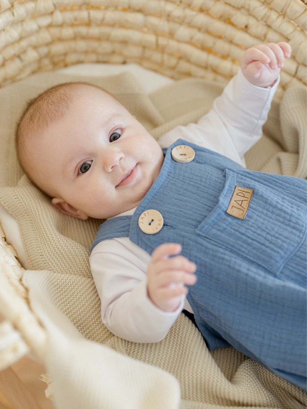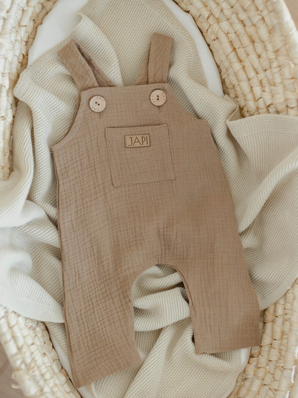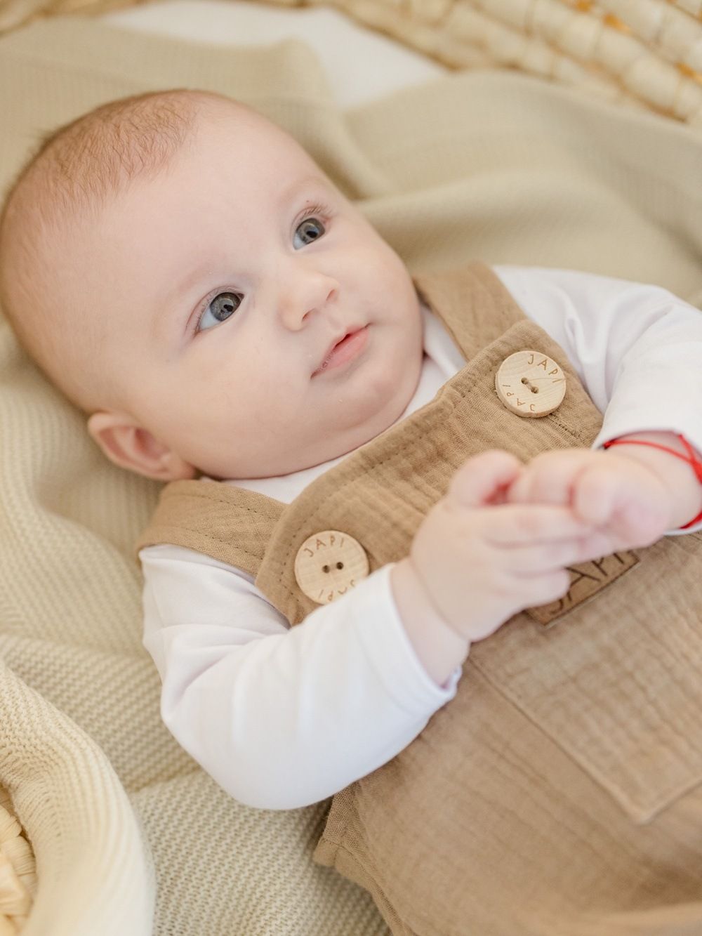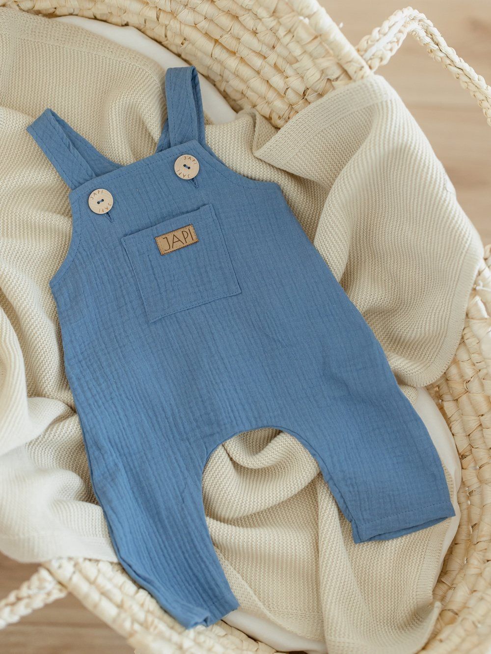 Udobna trenirka s naramenicama za najmlađe, od pamučnog muslina.