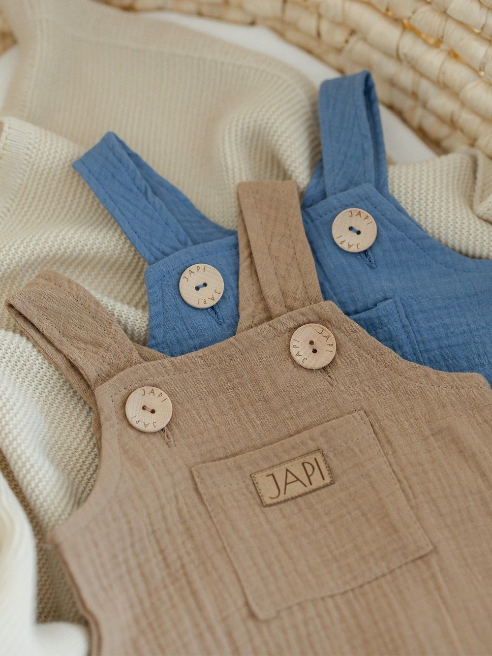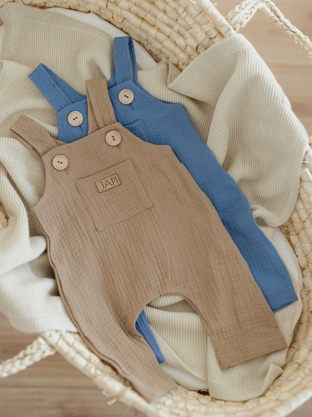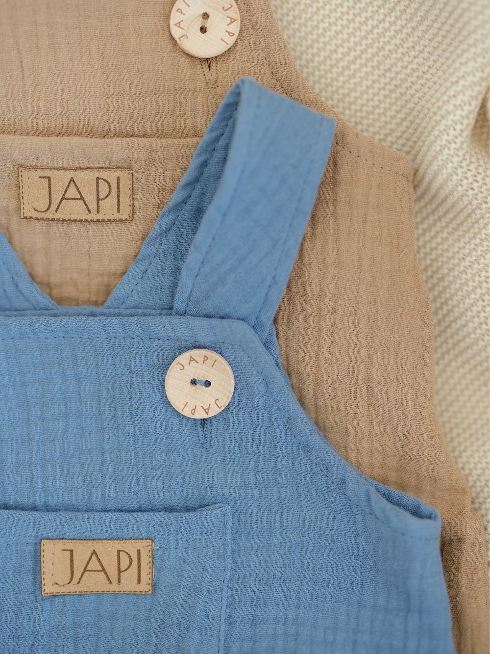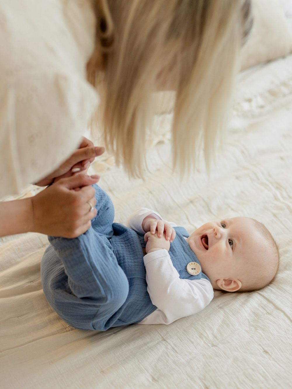 Udobna trenirka s naramenicama za najmlađe, od pamučnog muslina.