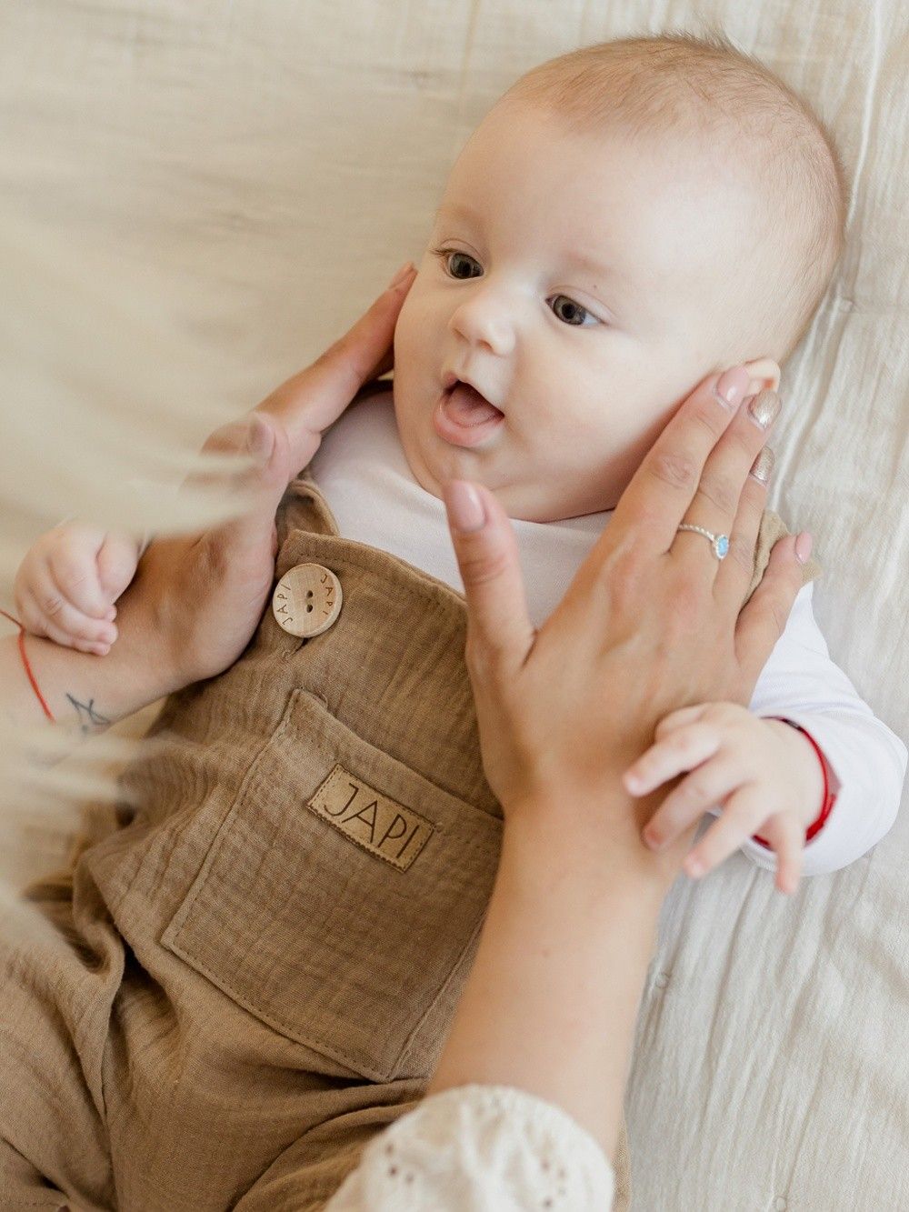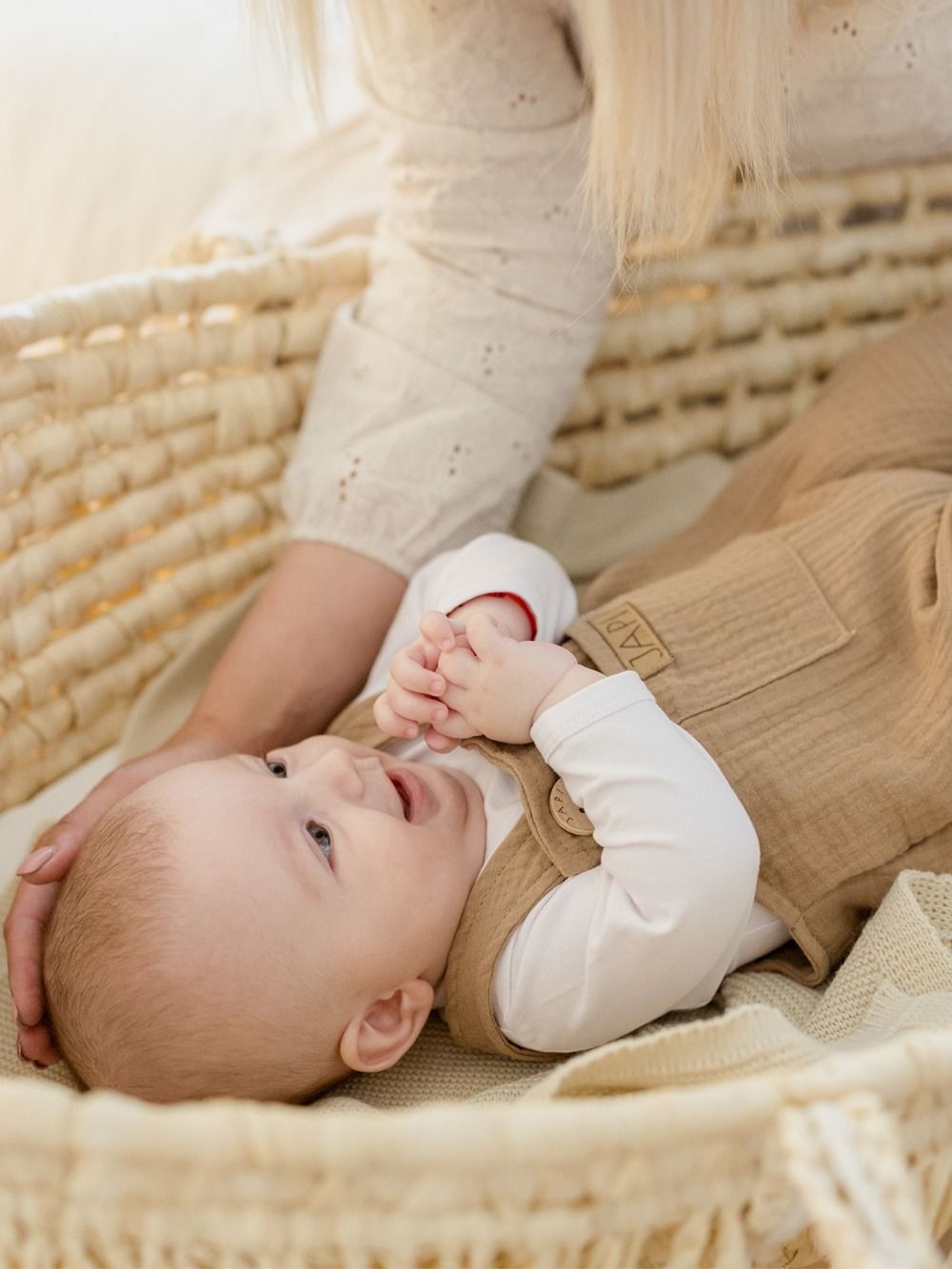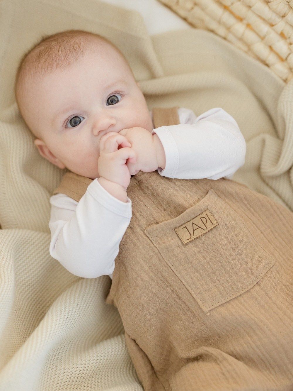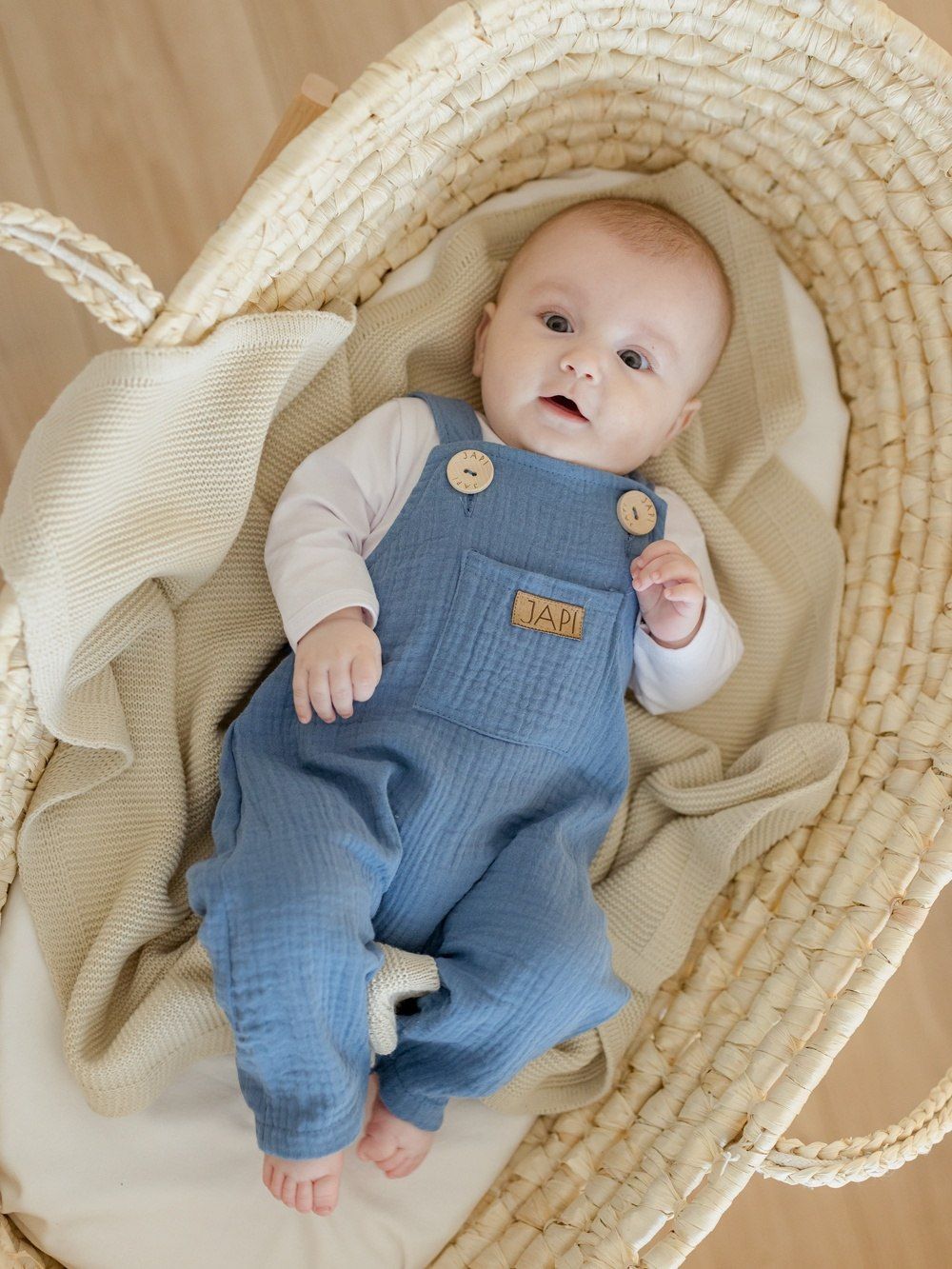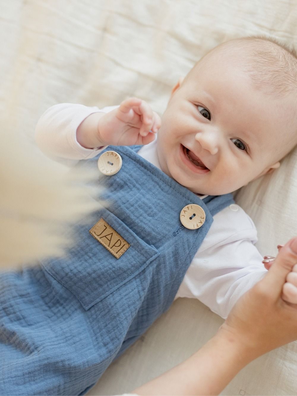 Udobna trenirka s naramenicama za najmlađe, od pamučnog muslina.