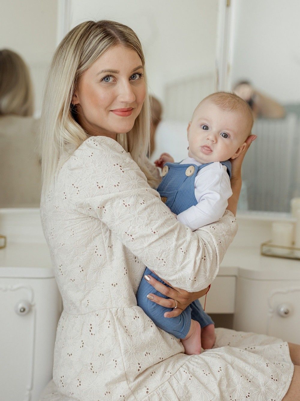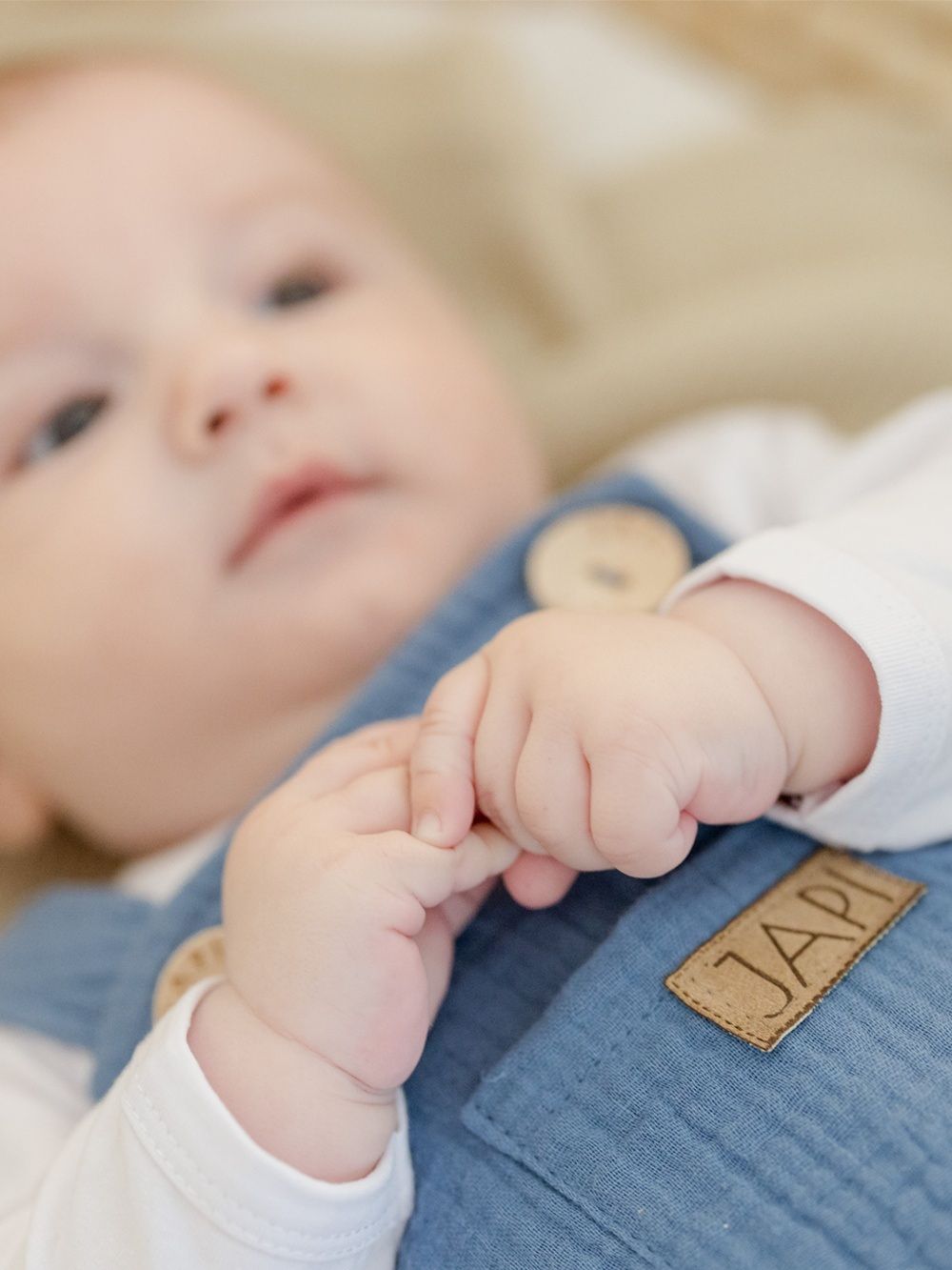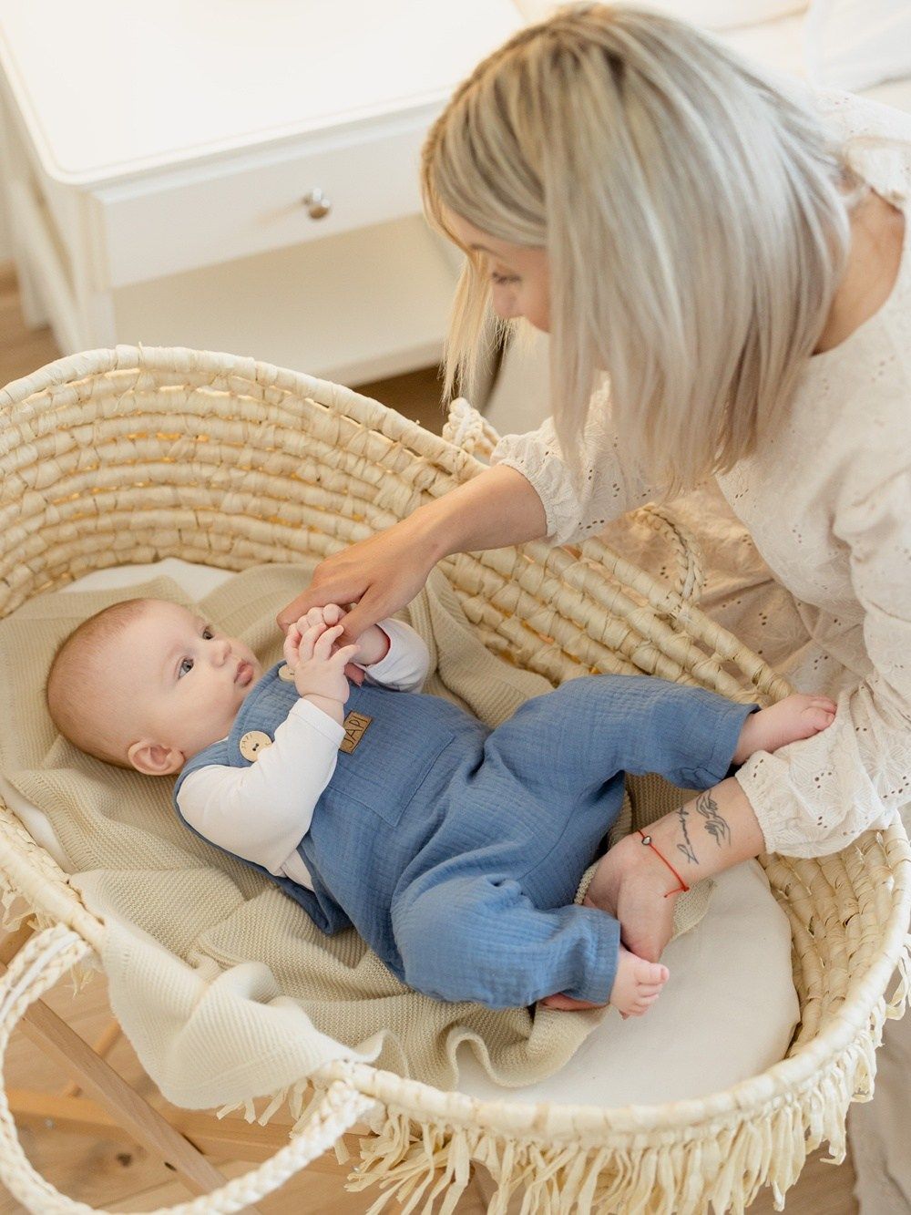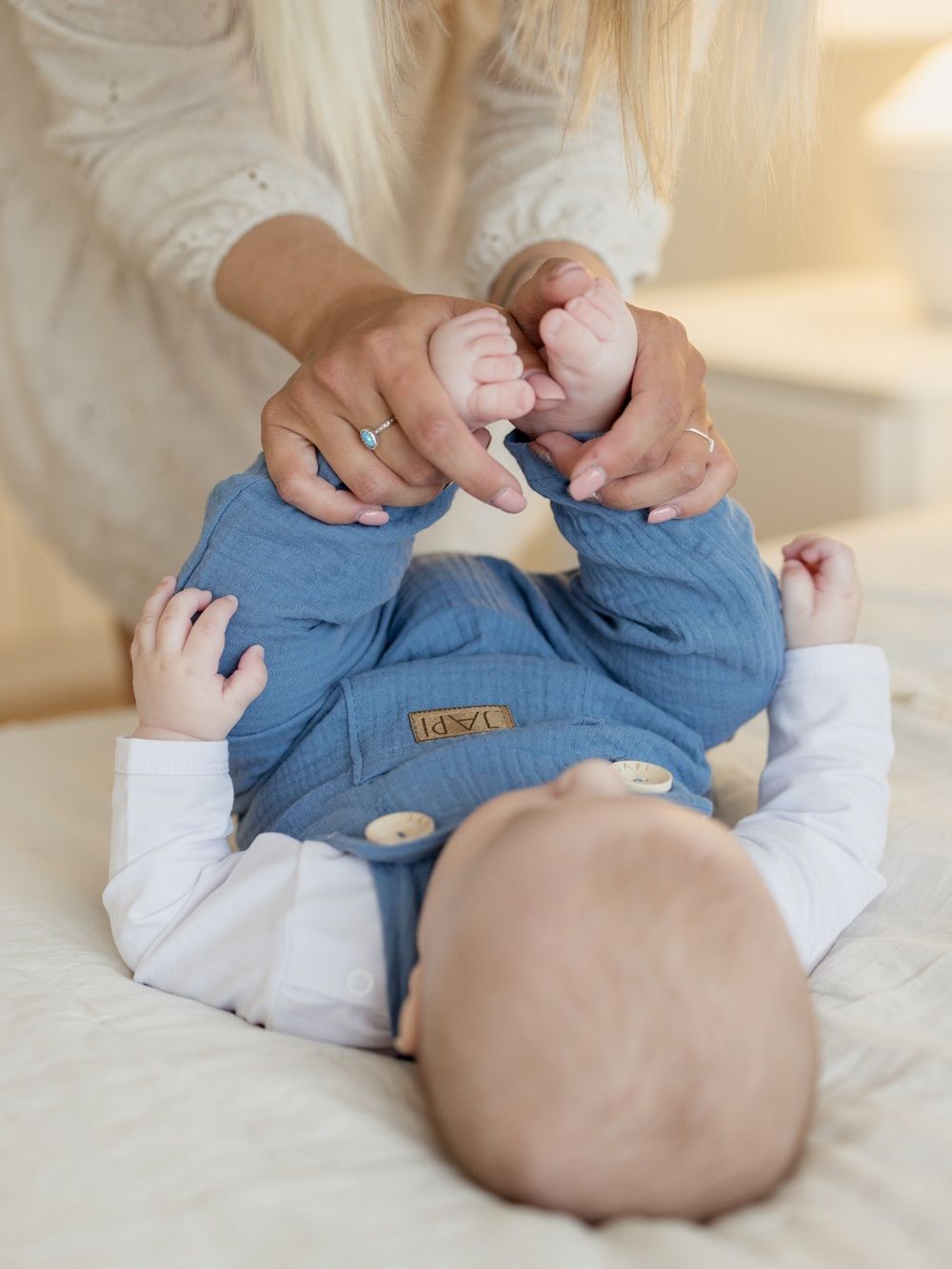 Udobna trenirka s naramenicama za najmlađe, od pamučnog muslina.