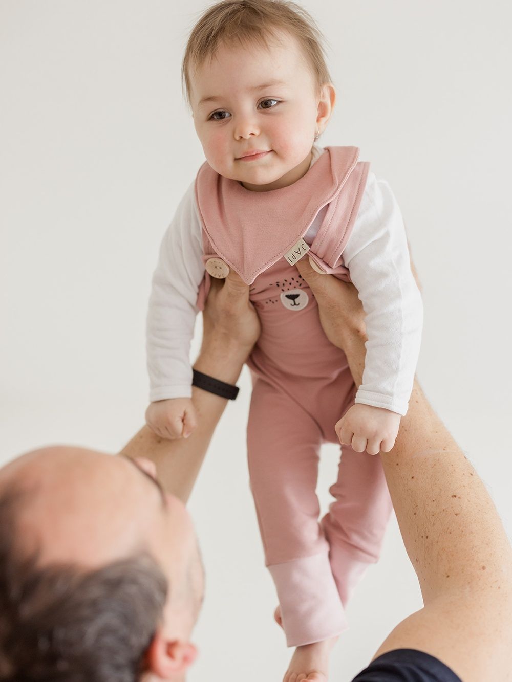 U ovoj našoj kolekciji pronaći ćete ih u ružičastoj i bež boji. Možete ih nadopuniti jednobojnim bodijem ili majicom. Možete ih koristiti kod kuće iu šetnji, na obiteljskom slavlju, ali i prilikom posjeta liječniku.