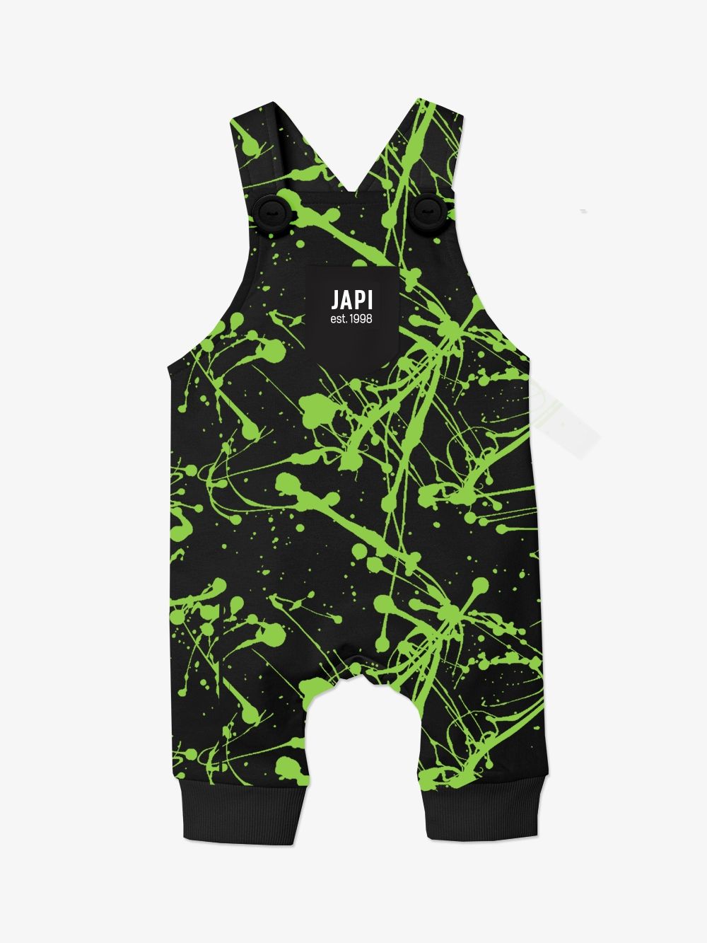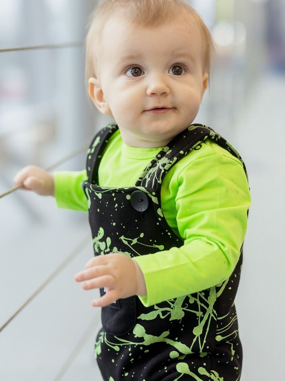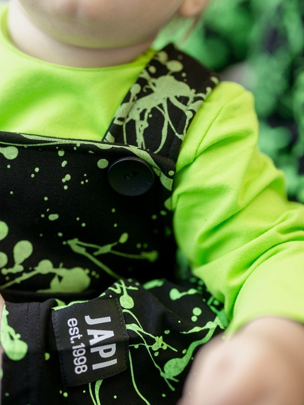 Moderan dizajn u kombinaciji crne i bijele i zelene te udobnim krojem, ćete jednostavno zavoljeti. Hlače s naramenicama ćete koristiti svaki dan. Udoban i provjeren kroj. Raskopčavanje na gumbove a u prednjem dijelu na naramenicama. Hlače imaju metalne gumbove , koje štite od ulaska hladnog zraka, te kontakta istog s tijelom djeteta.