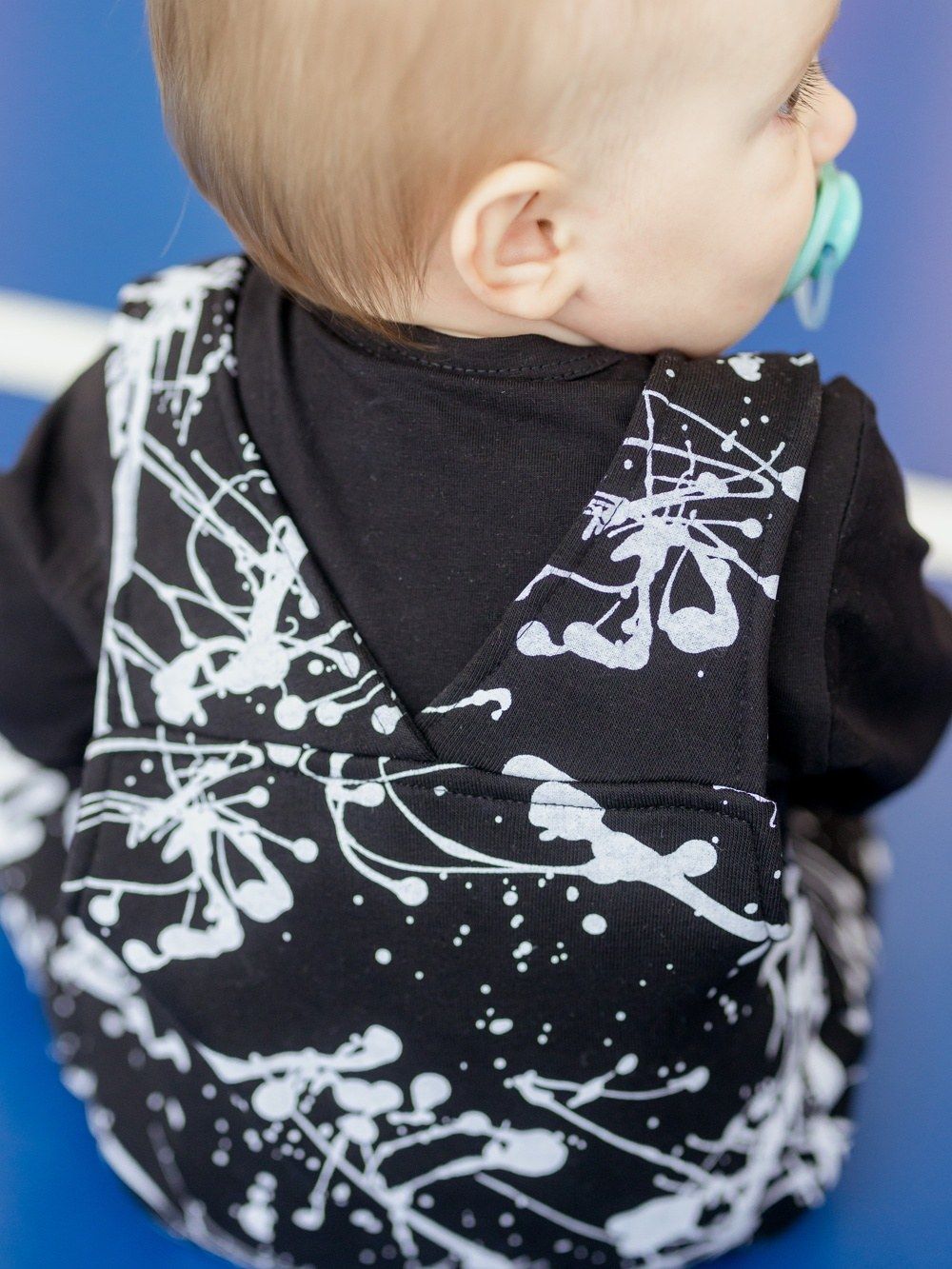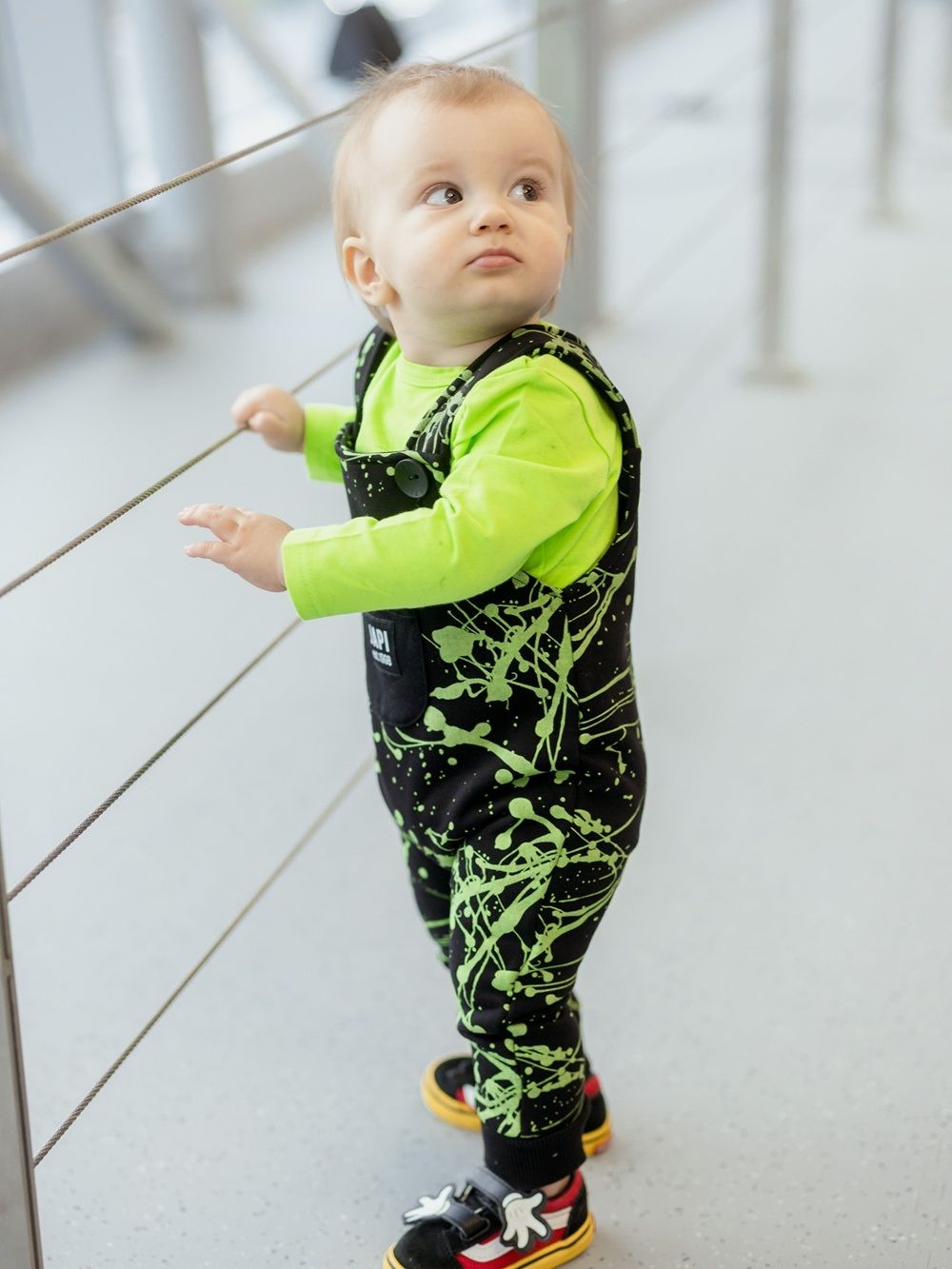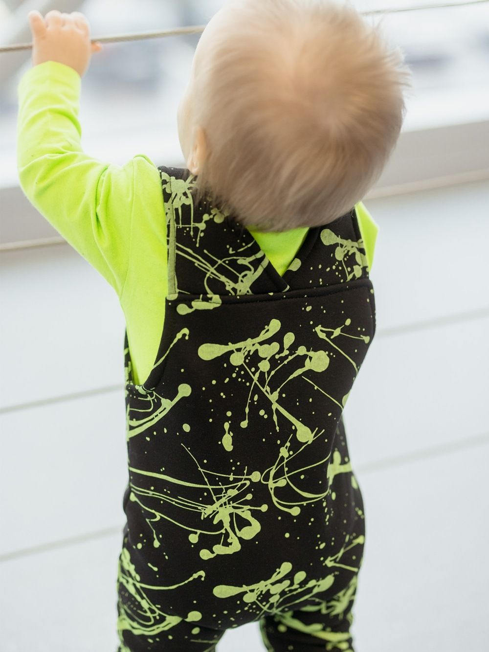 Moderan dizajn u kombinaciji crne i bijele i zelene te udobnim krojem, ćete jednostavno zavoljeti. Hlače s naramenicama ćete koristiti svaki dan. Udoban i provjeren kroj. Raskopčavanje na gumbove a u prednjem dijelu na naramenicama. Hlače imaju metalne gumbove , koje štite od ulaska hladnog zraka, te kontakta istog s tijelom djeteta.