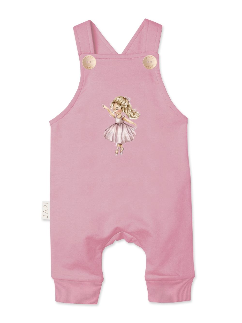 Dječje hlače s tregerima DOLL preslatki su i praktični komad u ormaru svake male princeze. Prednji dio krasi nježna ilustracija djevojčice u haljini, koja modelu daje bajkovit i razigran izgled. Hlače imaju udoban kroj sa spuštenim međunožjem, što omogućuje slobodu pokreta i maksimalnu udobnost tijekom cijelog dana. Tregeri se kopčaju na gumbe, što olakšava oblačenje i svlačenje. Donji dio nogavica završava elastičnim manžetama, zahvaljujući kojima hlače dobro stoje i ne podižu se. Izrađene su od mekane i ugodne pamuk tkanine, nježne prema osjetljivoj dječjoj koži. Dostupne u dvije nježne boje – bež i ružičasta – koje se lako kombiniraju s majicama ili majicama s kapuljačom iz DOLL kolekcije.