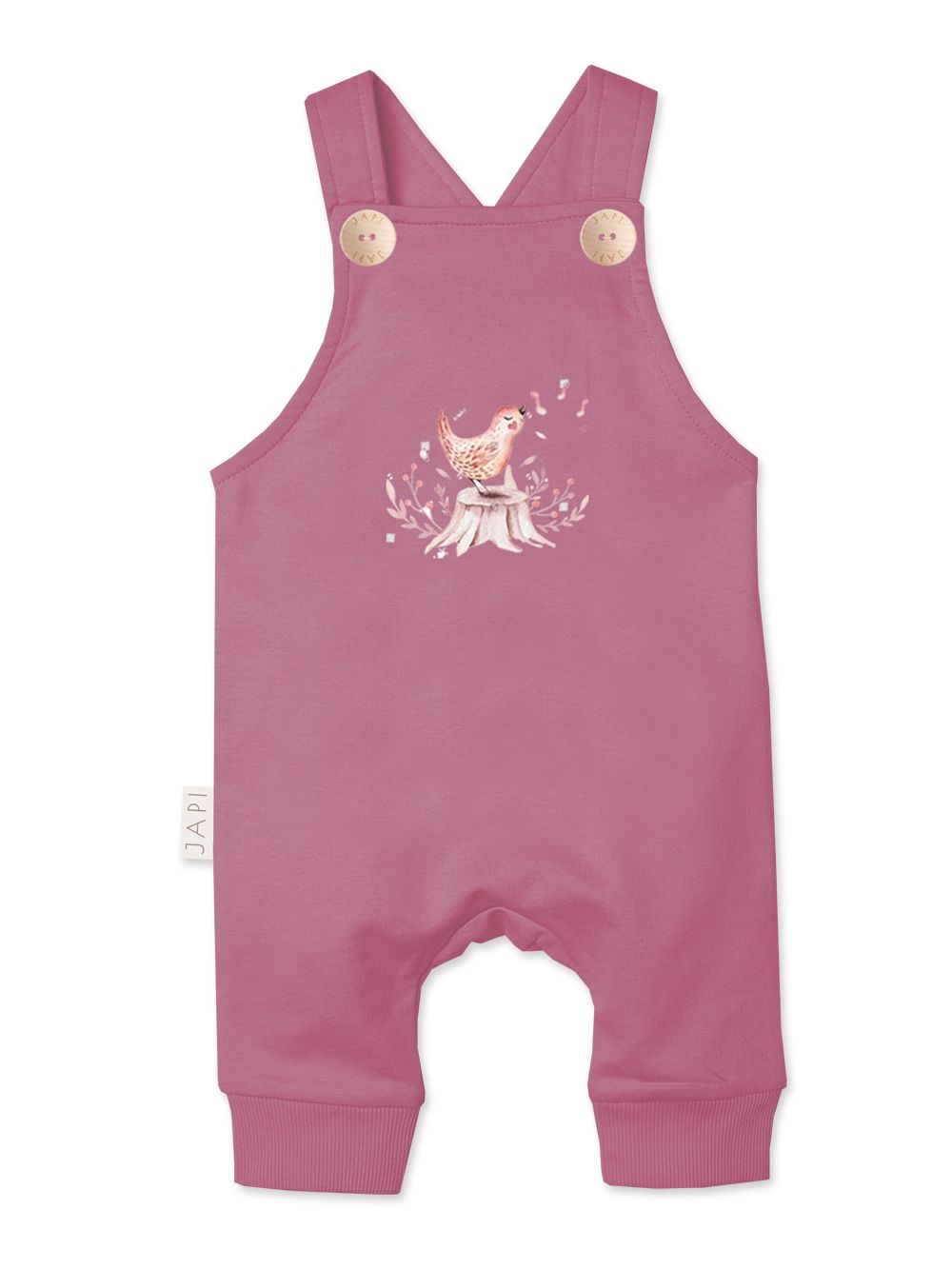 Dječje hlače na tregere MUSIC preslatki su i praktični komad za najmlađe. Izrađene od mekog i ugodnog materijala, jamče maksimalnu udobnost tijekom cijelog dana. Prednji dio krasi simpatičan print pjevajuće ptičice koji modelu daje veseo i originalan izgled. Tregere se kopčaju na gumbe, što olakšava oblačenje i svlačenje. Udoban kroj zajedno s elastičnim patentima na nogavicama osigurava slobodu pokreta i ugodno nošenje. Dostupne u dvije nježne boje – bež i malina – savršen su izbor za svakodnevno nošenje kod kuće ili u šetnji.