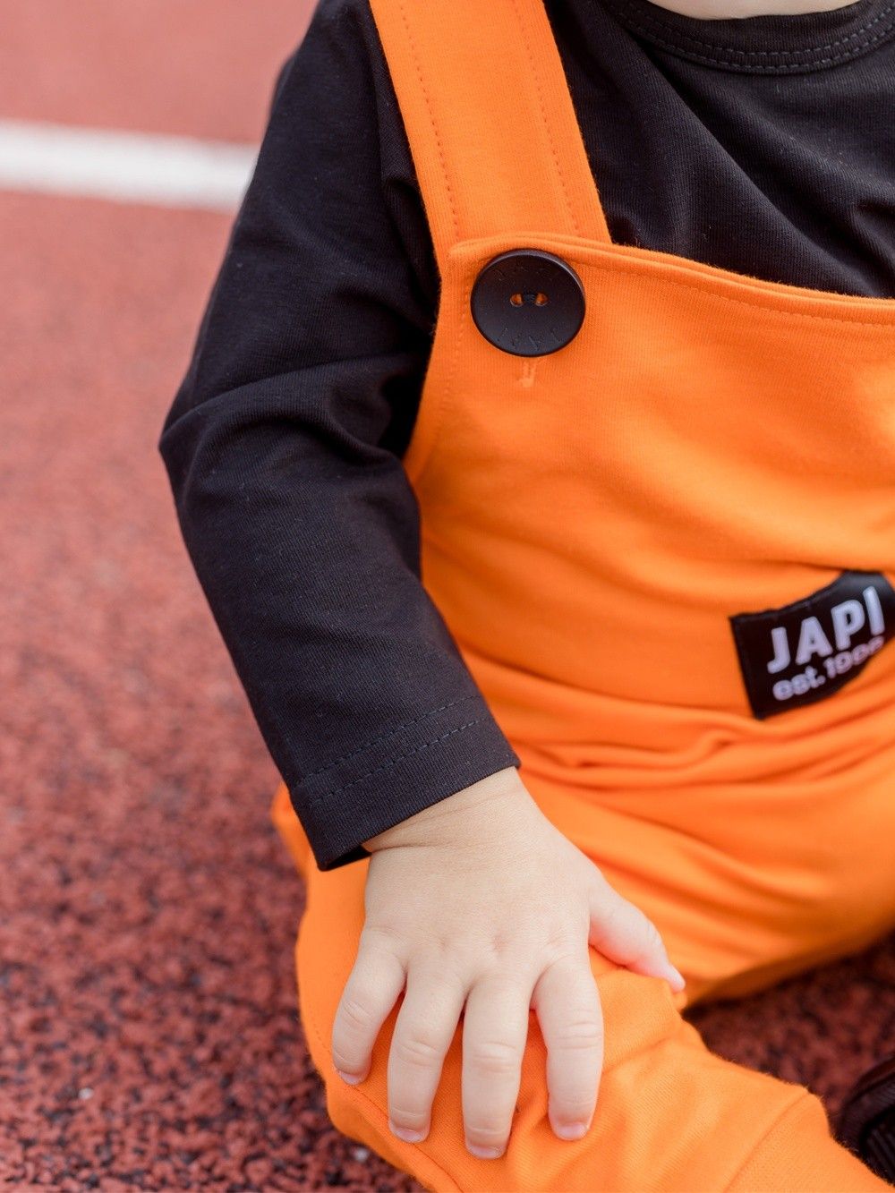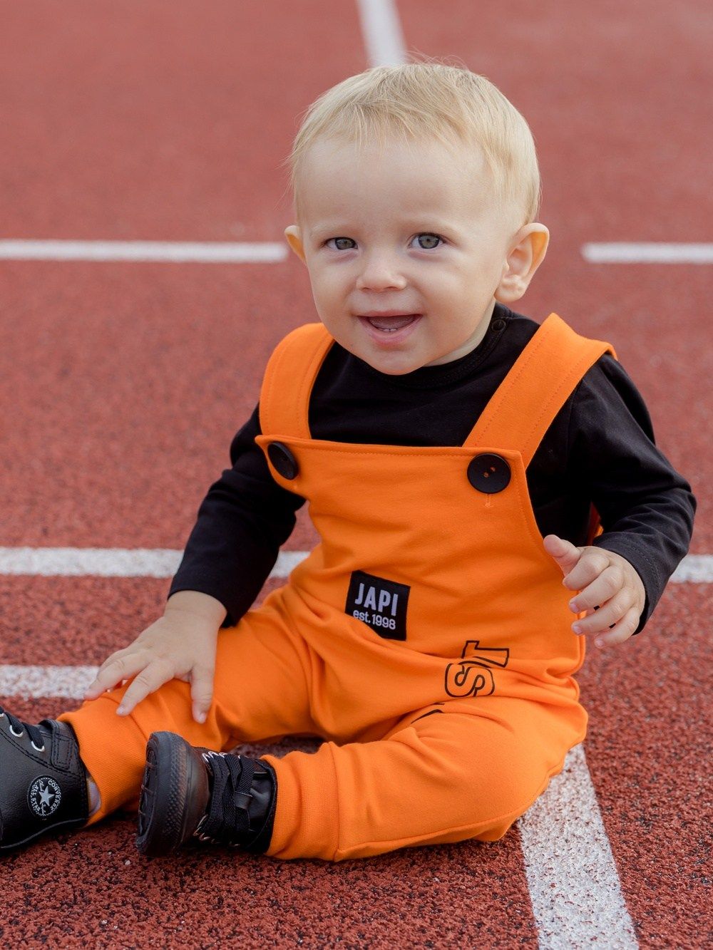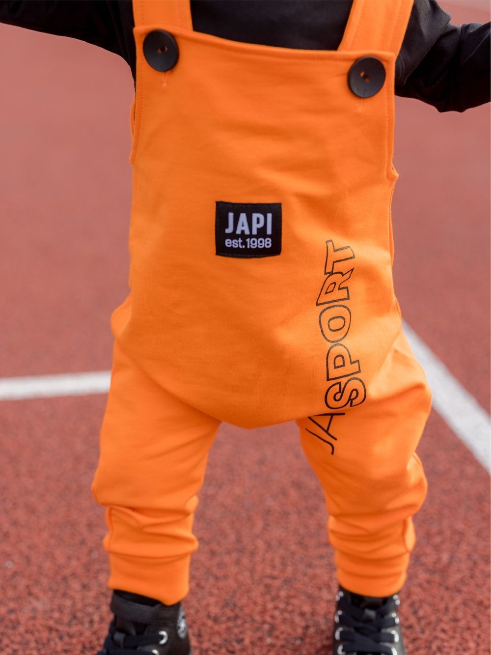 Udobna i praktična muška trenirka s naramenicama. Svježe narančaste boje s kontrastnim crnim dodacima. Vaš omiljen model. Pgoda za svaki dan, u vrtić ili školu. Vrlo je stilska i moderna. Kombinirajte s majicom ili bodijem i imati ćete komplet cijeli outfit.