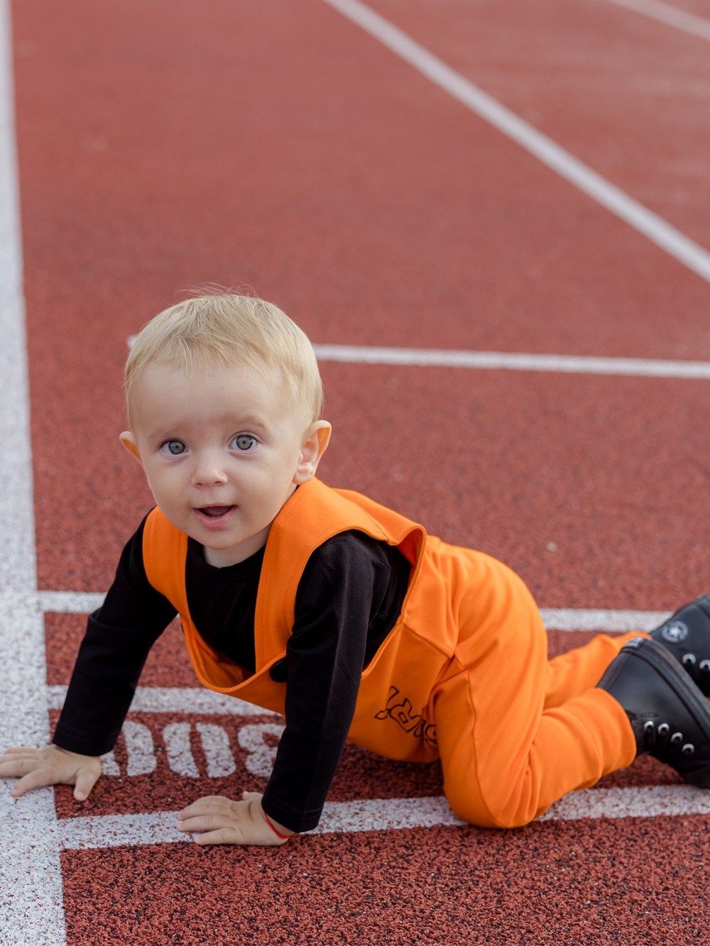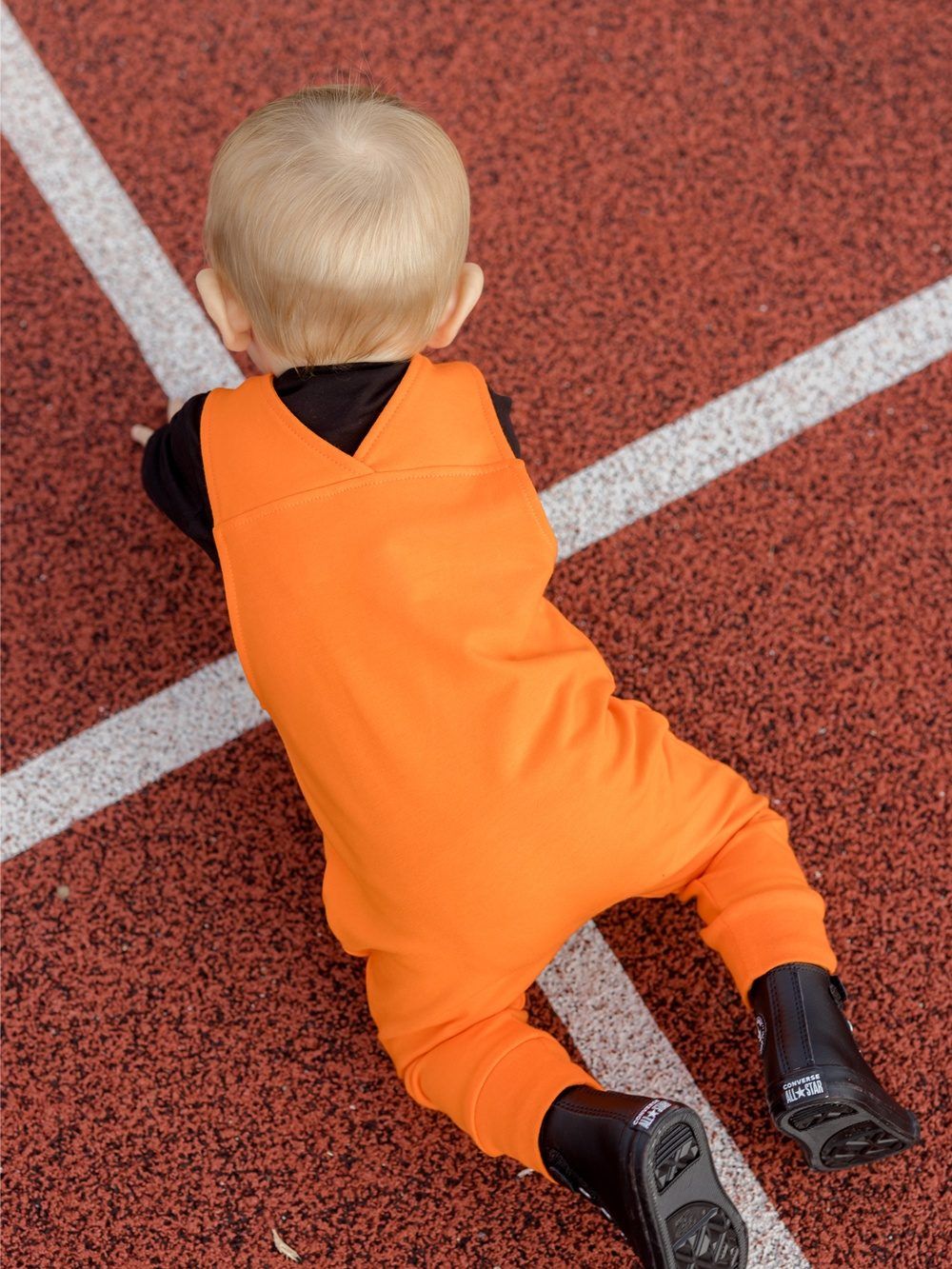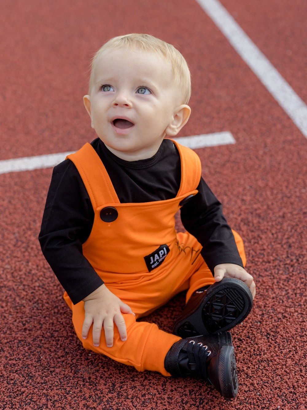 Udobna i praktična muška trenirka s naramenicama. Svježe narančaste boje s kontrastnim crnim dodacima. Vaš omiljen model. Pgoda za svaki dan, u vrtić ili školu. Vrlo je stilska i moderna. Kombinirajte s majicom ili bodijem i imati ćete komplet cijeli outfit.