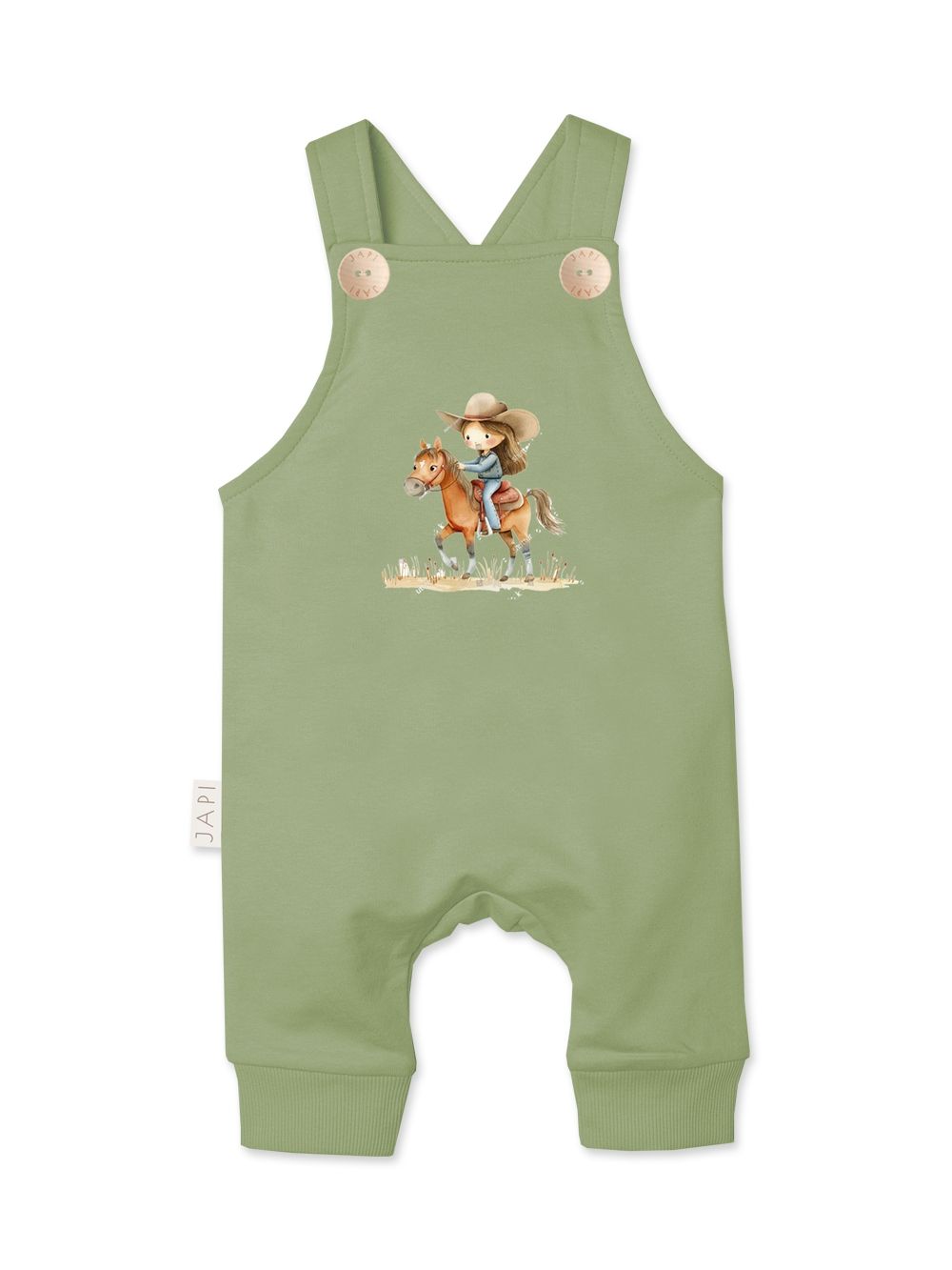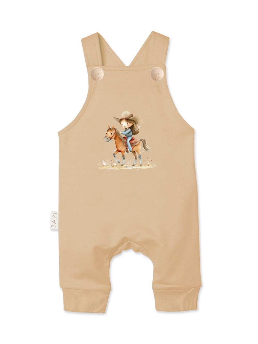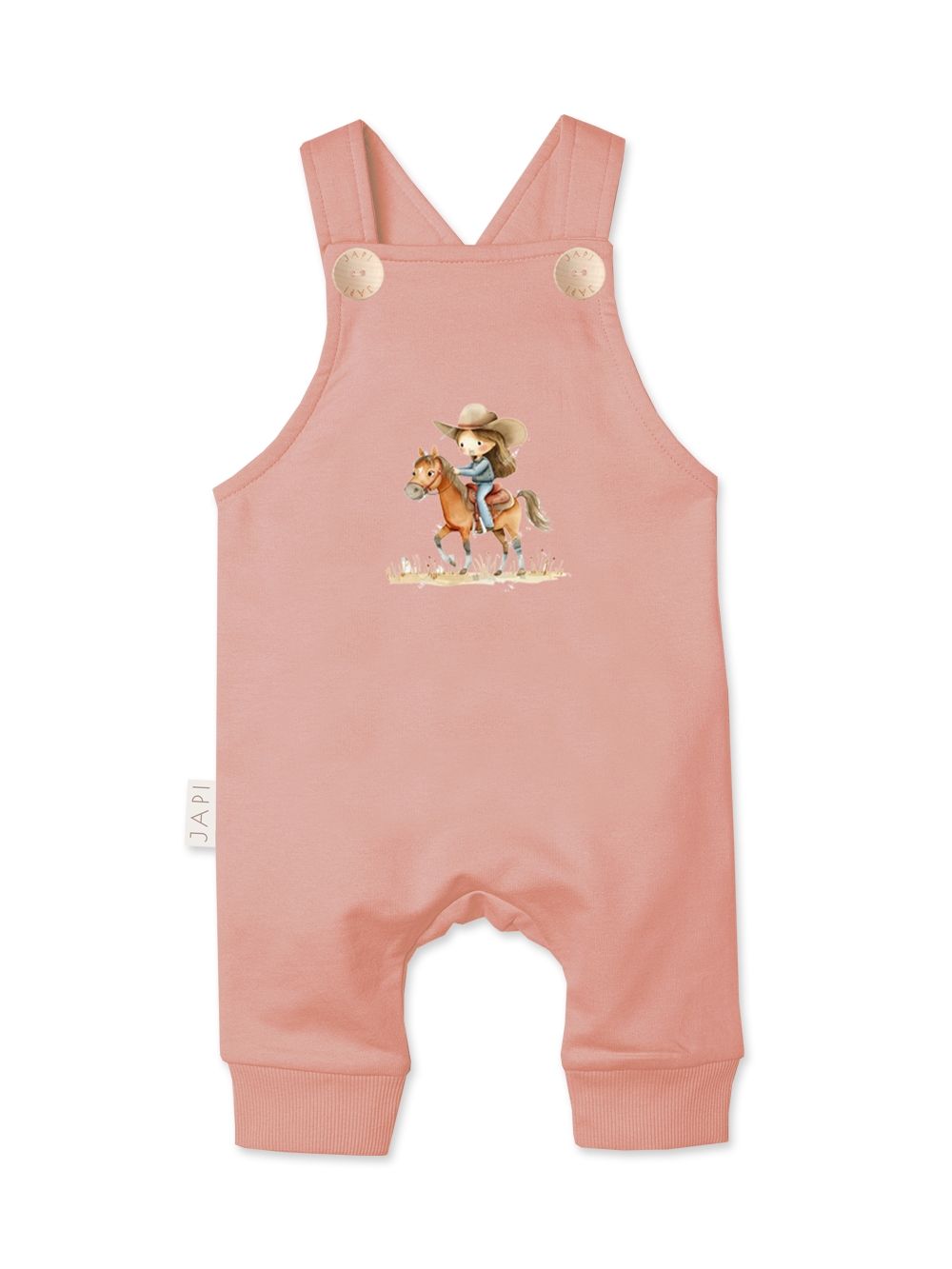 Dječje hlače s tregerima WESTERN razigran su i praktičan komad koji će se istaknuti u ormaru svakog malog avanturista. Prednji dio krasi originalna ilustracija djevojčice na konju, koja hlačama daje jedinstven western šarm. Tregeri s gumbima olakšavaju oblačenje i svlačenje, a ujedno osiguravaju da odjeća udobno stoji tijekom cijelog dana. Širi kroj pruža maksimalnu slobodu kretanja, dok elastični patenti na nogavicama osiguravaju da hlače ostanu na mjestu i štite od hladnoće. Izrađene su od mekog i ugodnog materijala, nježnog prema osjetljivoj dječjoj koži. Dostupne su u tri moderna tona – svijetlosmeđa, puderasto ružičasta i svježe zelena – pa se lako kombiniraju s bodijima, majicama ili duksericama. Savršen izbor za svakodnevno nošenje, igru i obiteljske trenutke u udobnosti.